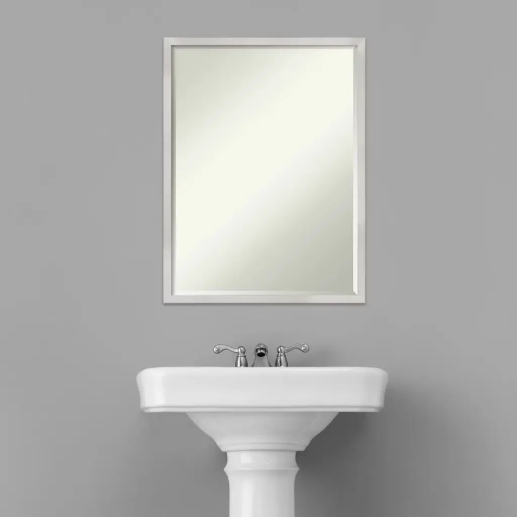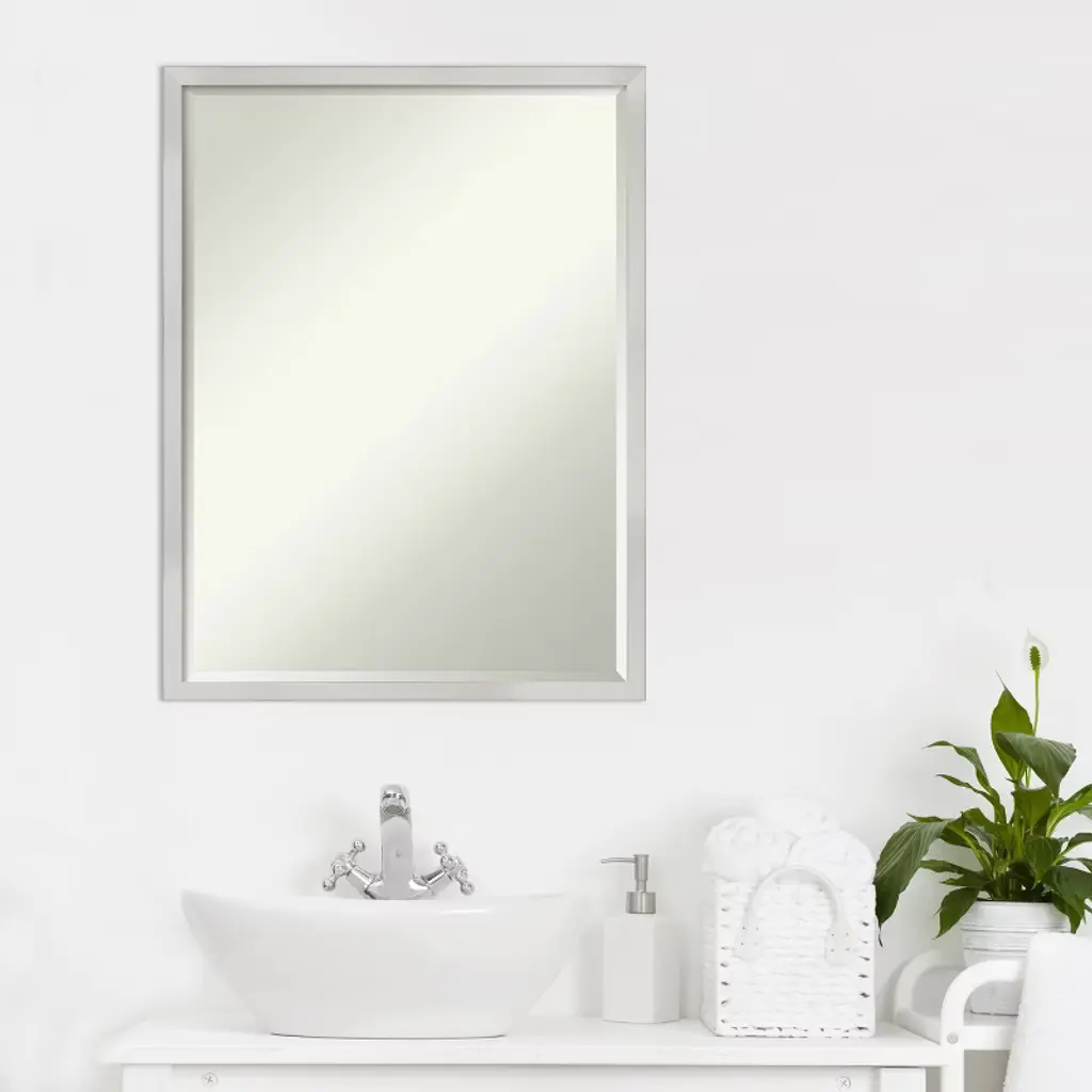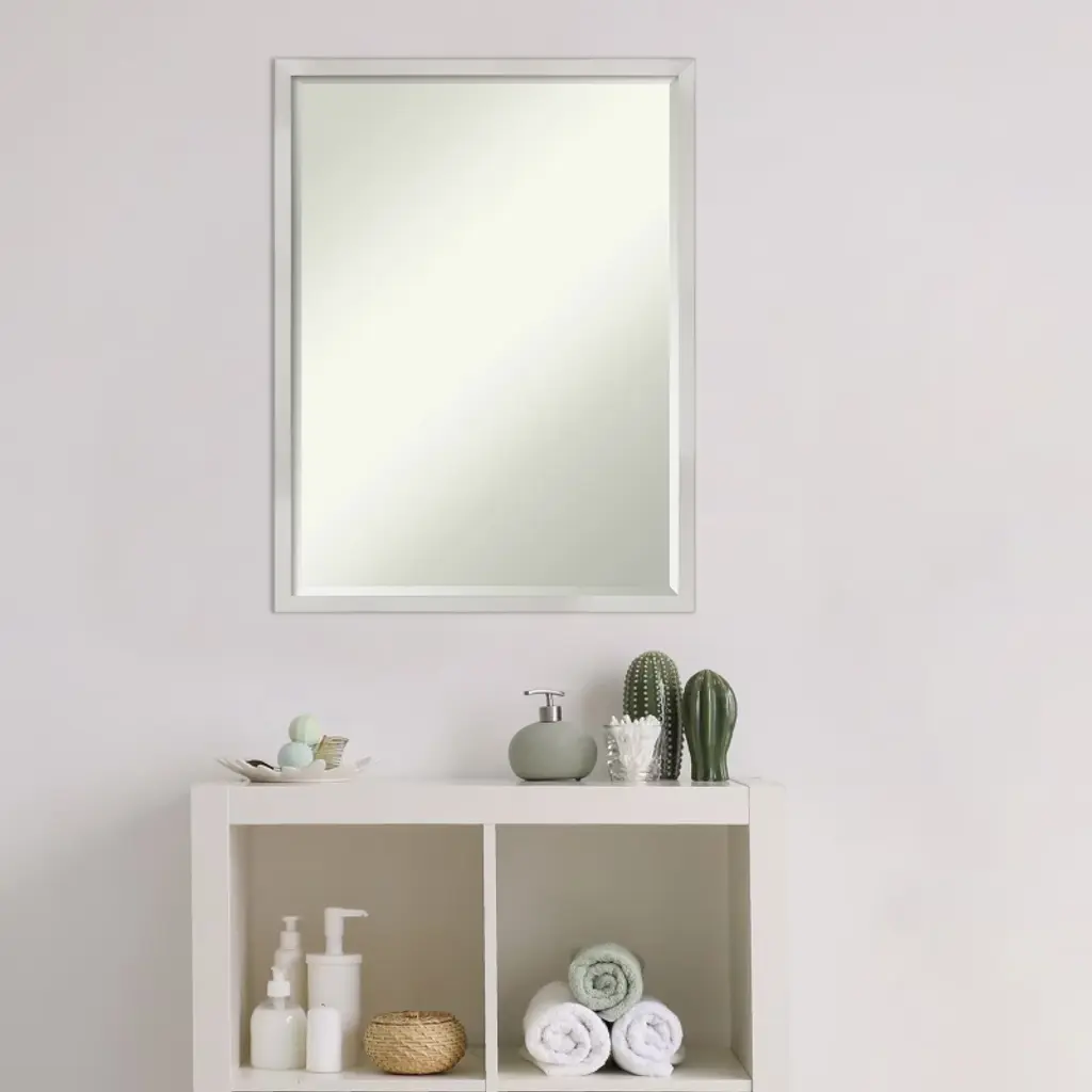 Amanti Art Svelte Silver Petite Bevel Wood Bathroom Wall Mirror 25.5 X 19.5 In.