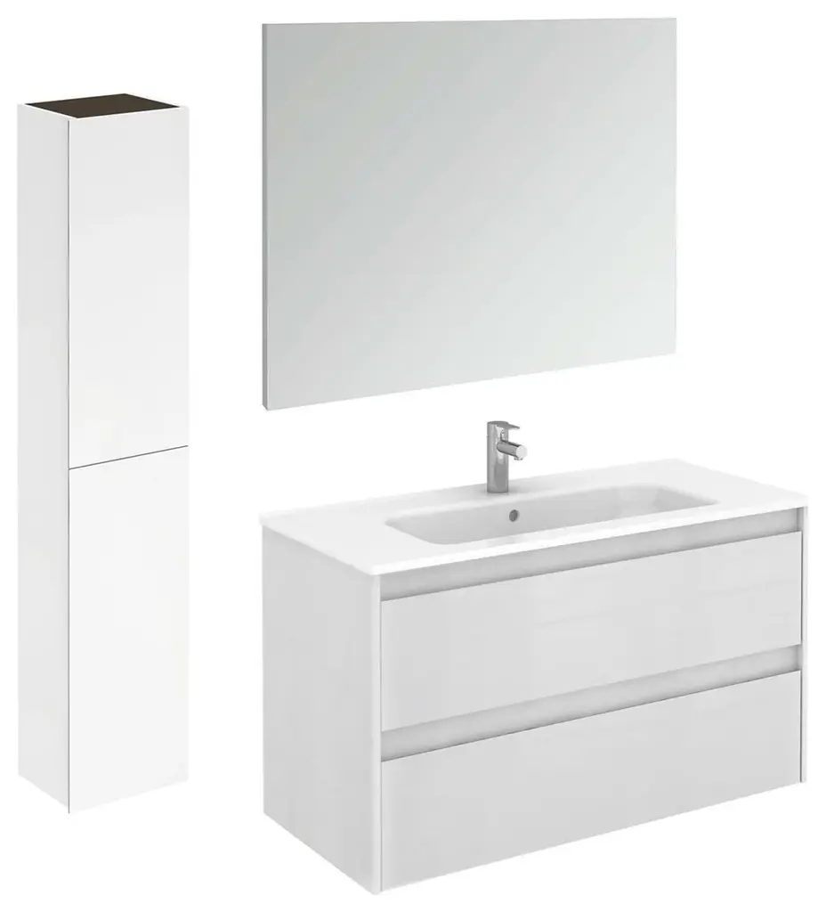 Ambra 100 Pack 2 Wall Mount Bathroom Vanity W/ Mirror And Column In Matte White
