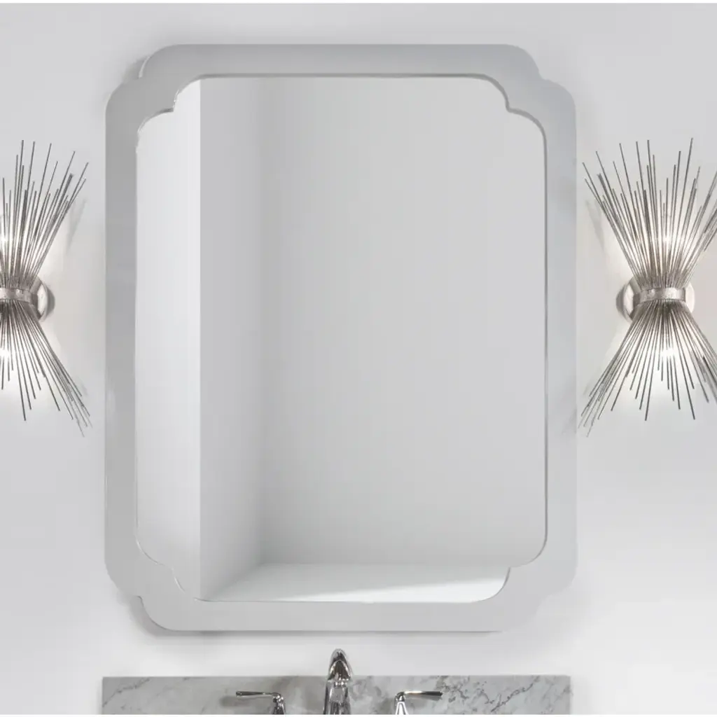 Finished in their signature glossy white lacquer with a playful pinched corner detail, the Amelia mirror is a versatile accessory perfect for your entry foyer or powder room.