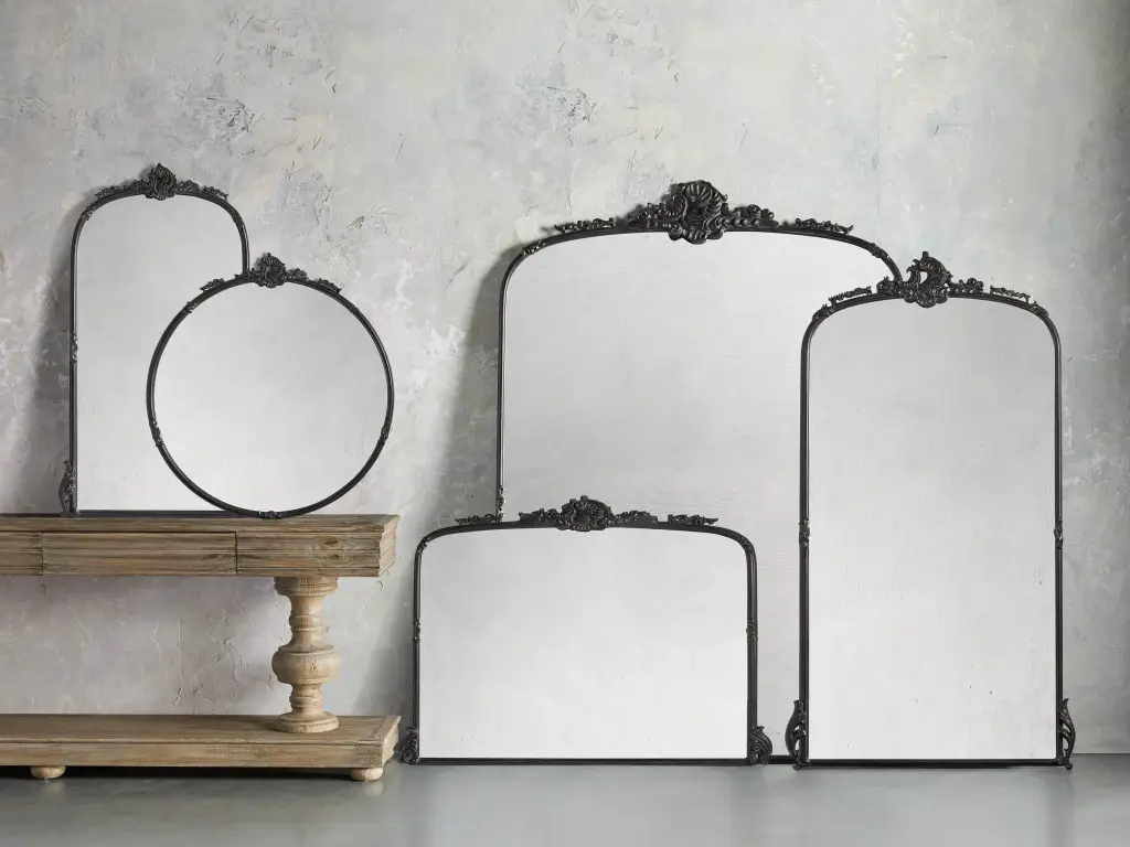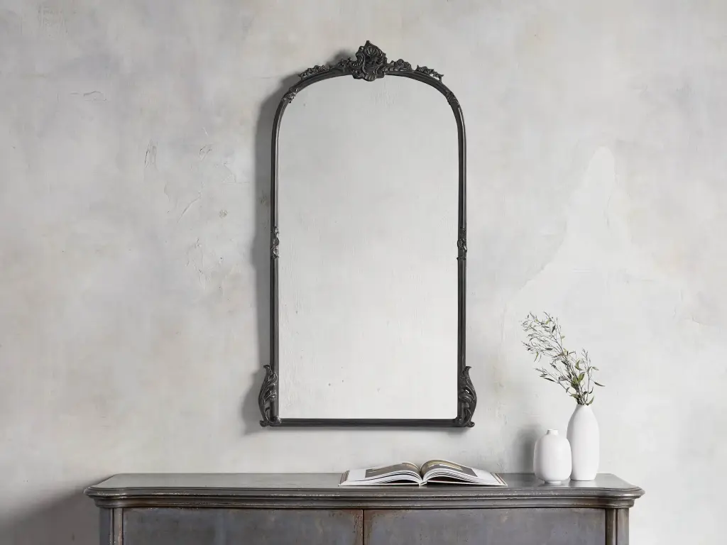 Inspired by traditional French designs, our Amelie Mirror is framed in iron and resin with elegant floral-and-vine detailing. A distressed, textured finish exposes warm, metallic undertones, evoking a vintage-inspired aesthetic.