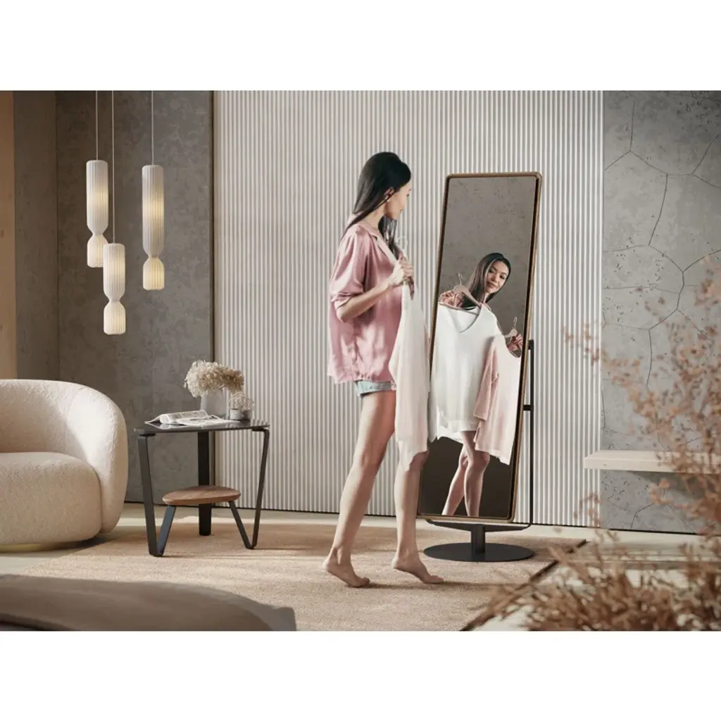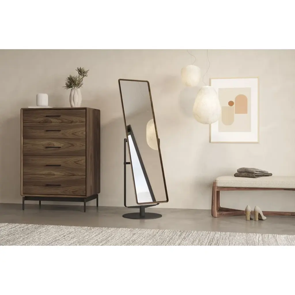 Celebrating the winsome beauty of a simpler time, the Alcy tilting floor mirror has beveled glass and carved accents on the posts and stretcher. The finish over cathedral oak veneers captures the essence of a well-loved heirloom passed down through the generations. It adds warmth while the variations in color reveal the natural beauty of the wood beneath.