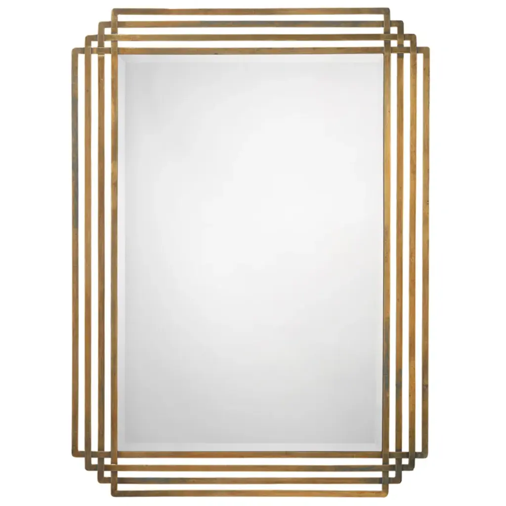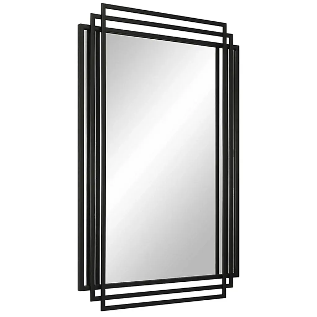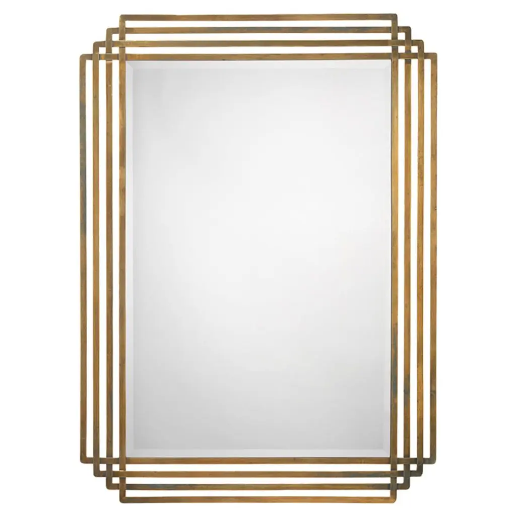 Frame your reflection in art deco style with the Amherst Mirror from Uttermost. The open iron framework forms lovely outlines for a sense of elegance. Within the dazzling silhouette, a mirror provides a brilliant reflection. Mount this accent mirror vertically to form a tall focal point or horizontally above a console.
