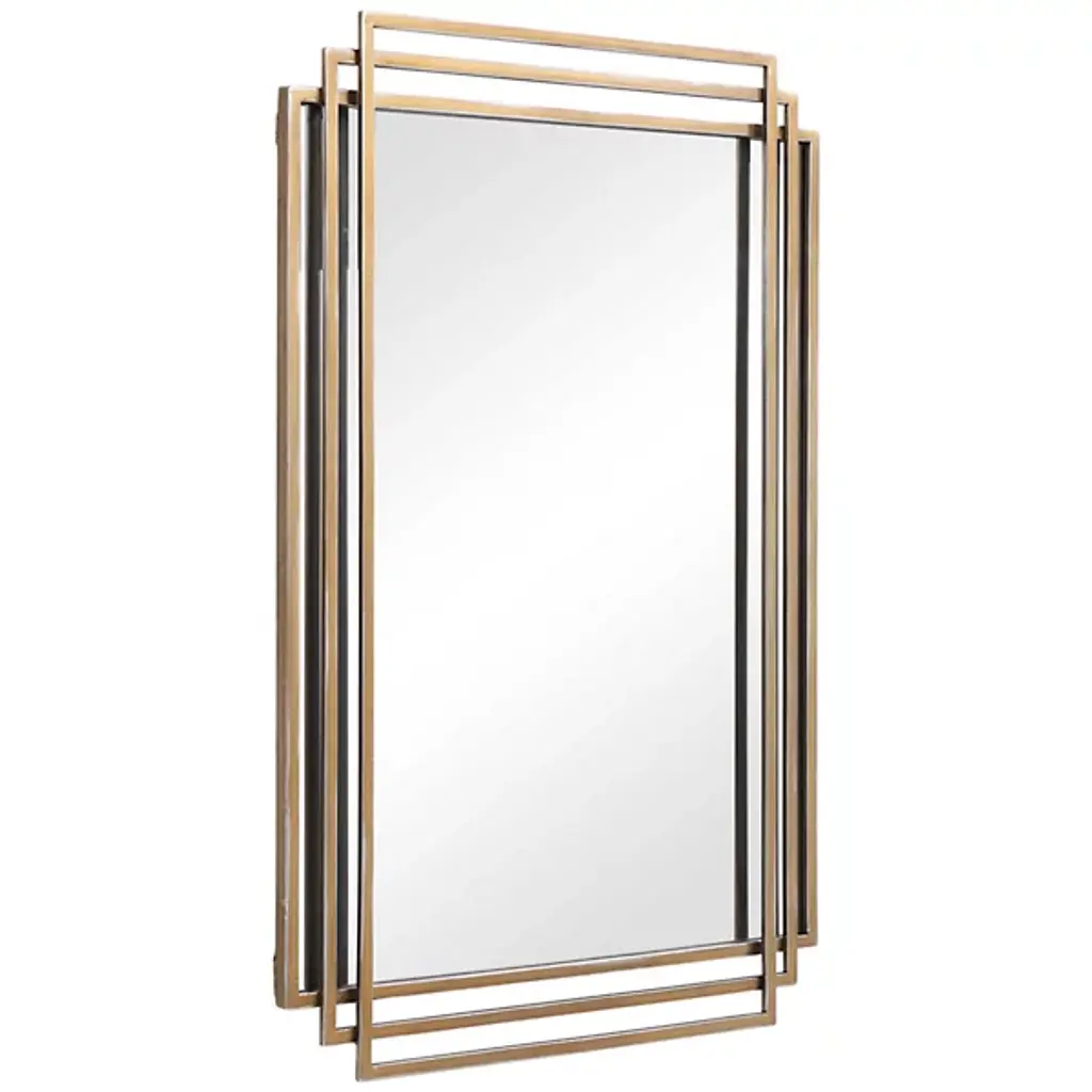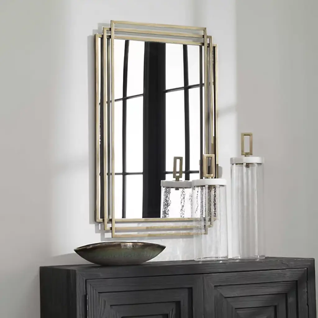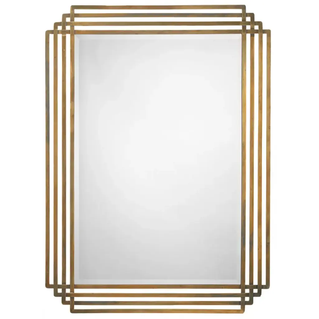 Frame your reflection in art deco style with the Amherst Mirror from Uttermost. The open iron framework forms lovely outlines for a sense of elegance. Within the dazzling silhouette, a mirror provides a brilliant reflection. Mount this accent mirror vertically to form a tall focal point or horizontally above a console.