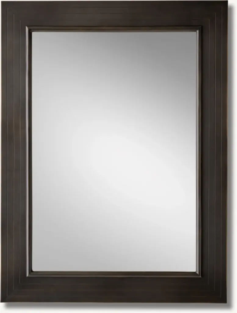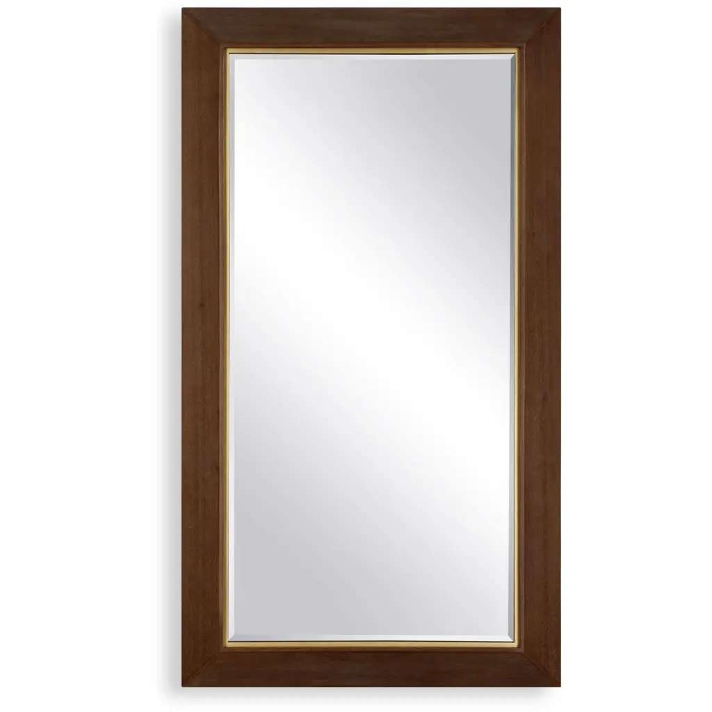 The Andin mirror's wide, brass frame is etched with crisp, tiered lines, lending it an artistic attitude. Beaded detailing borders the glass, further defining the geometric form and adding dimension to the mirror's tonal beauty.