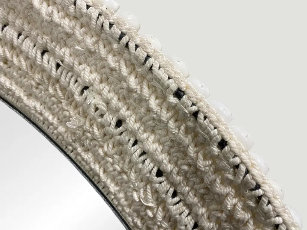 Stunning six inch wide frame of shells hand sewn onto a crocheted backed mirror. Custom sizes available. The price reflects the size shown.Own an Andrianna Shamaris originalAndrianna Shamaris. The Leader In Modern Organic Design.