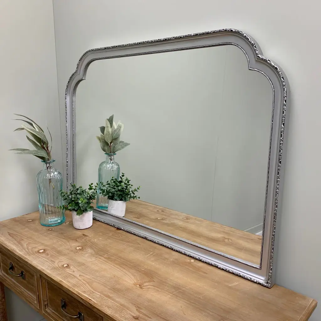 Angelina Framed Mantel Mirror, Clover Cathedral, 38.6"x27.6", Silver Spray
