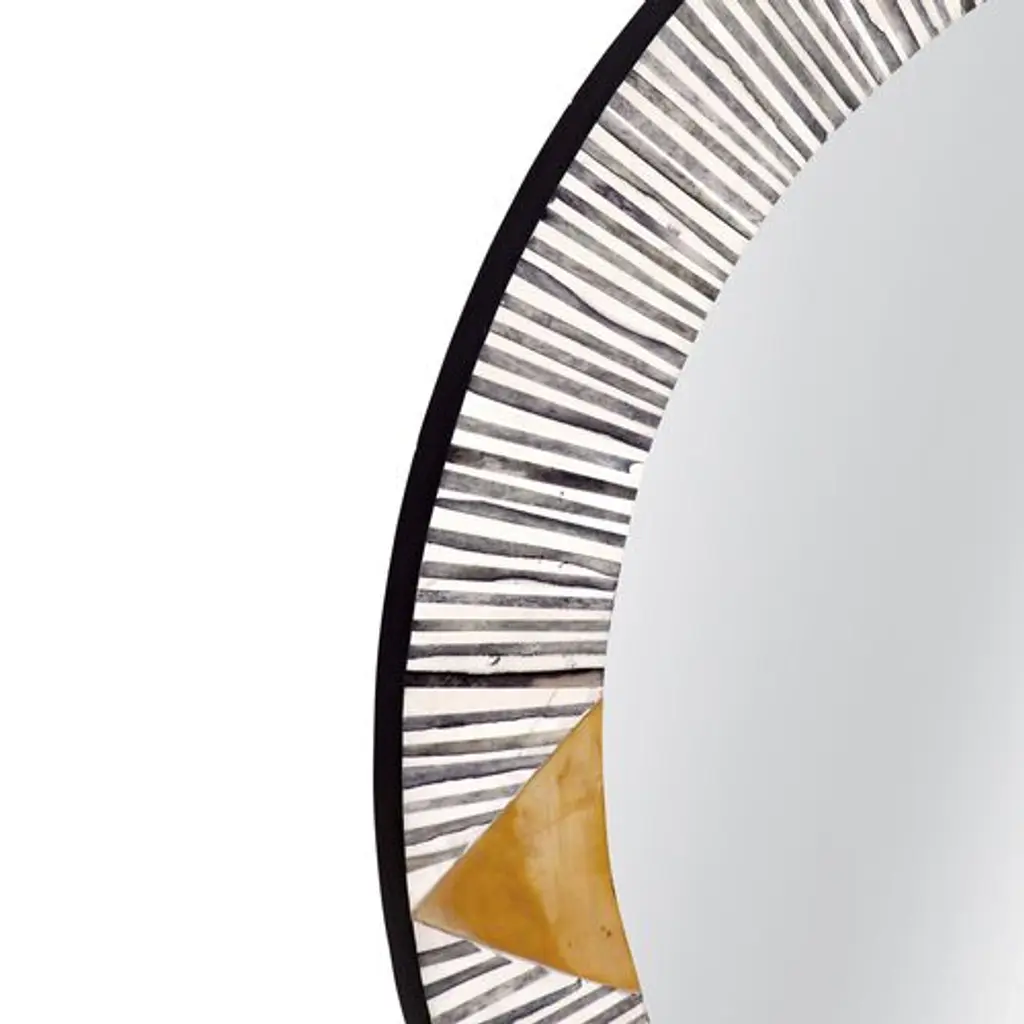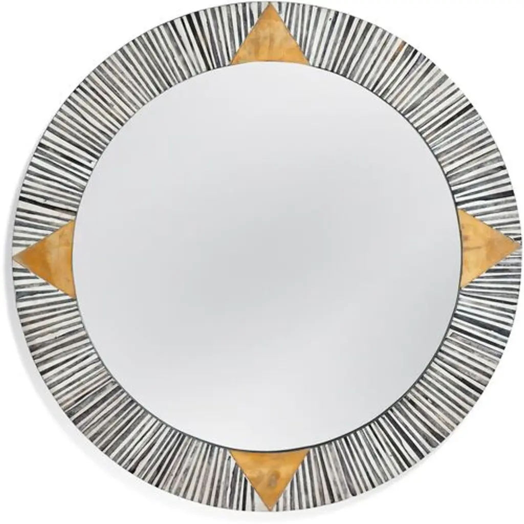 The epitome of organic elegance, this round mirror's frame is crafted of black and white bone tiles accented with brass. Whether you hang it in an entry, a powder room, or a living room, it's certain to command attention.