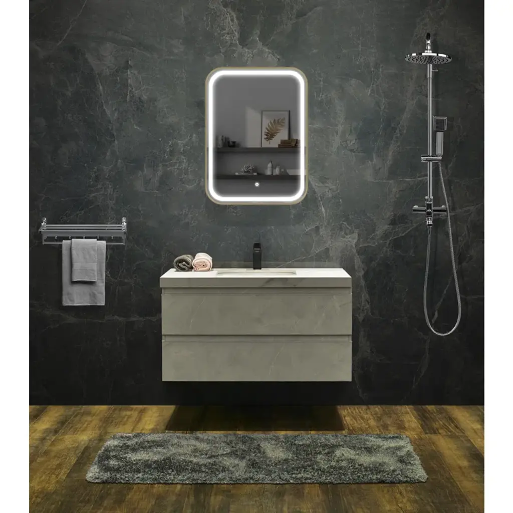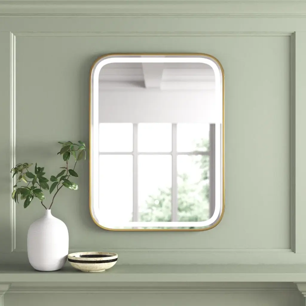 Elevate your skincare routine with this lighted vanity mirror. It's designed with a slender aluminum frame, and it has a rectangular silhouette with rounded corners for a sleek look. We love how the built-in LED with a touch sensor lets you set the glow just right while you get ready for the day. Plus it's safe to use in damp areas, and it hangs vertically or horizontally to suit your needs. Want to think outside the box? Mount this mirror above your bedroom dresser or in your closet for extra light while you pick the perfect outfit.