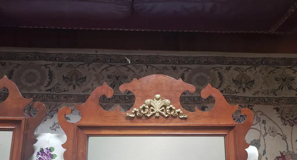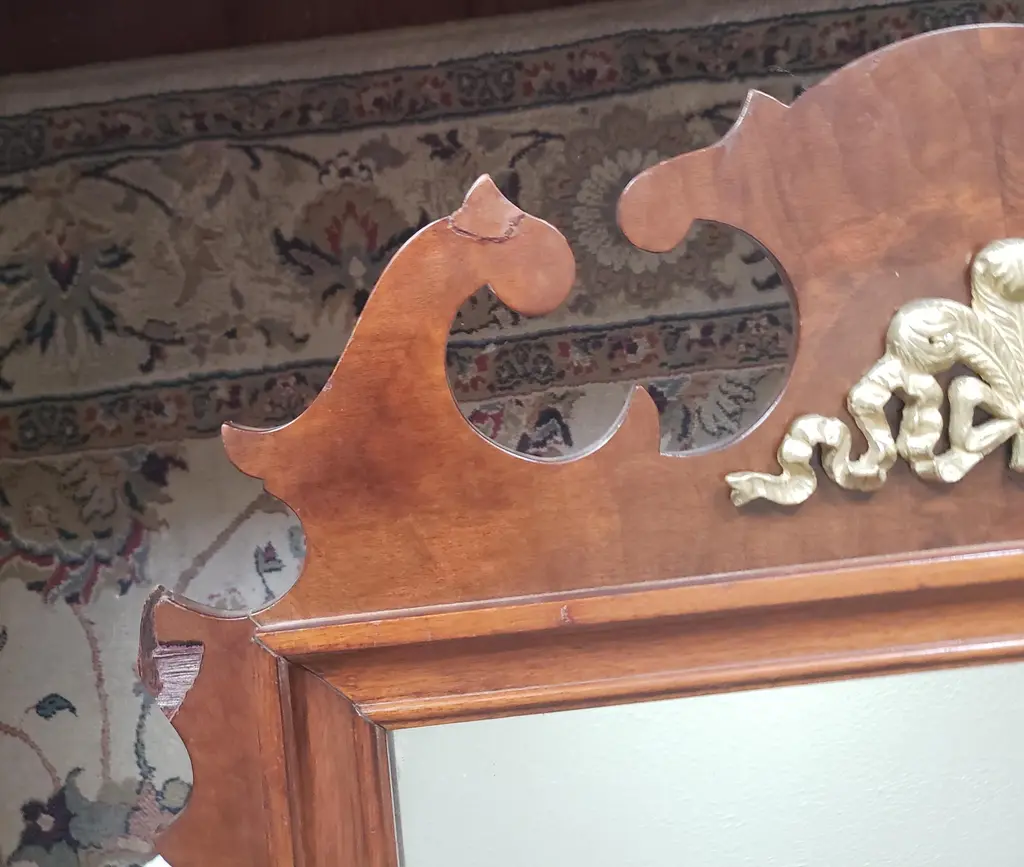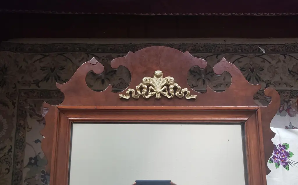 Antique Solid Mahogany Chippendale mirrors with solid antique brass ornate. 23"W x 1.5"D x 40"H