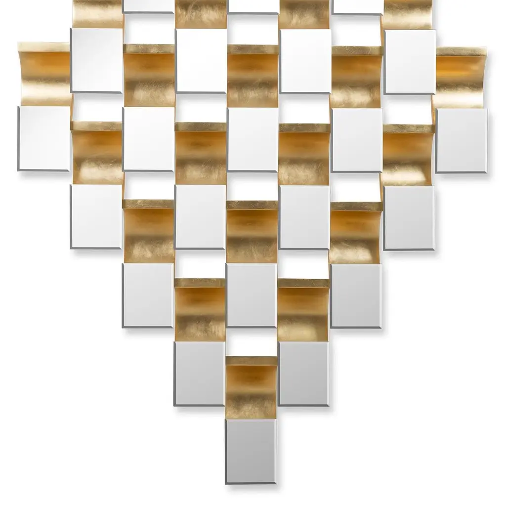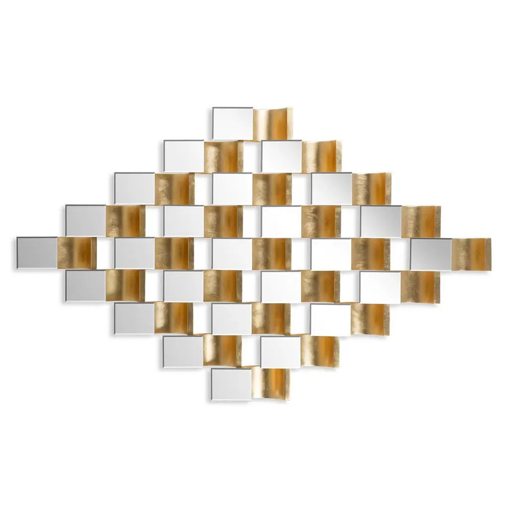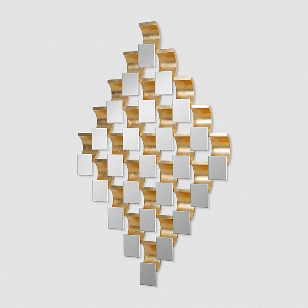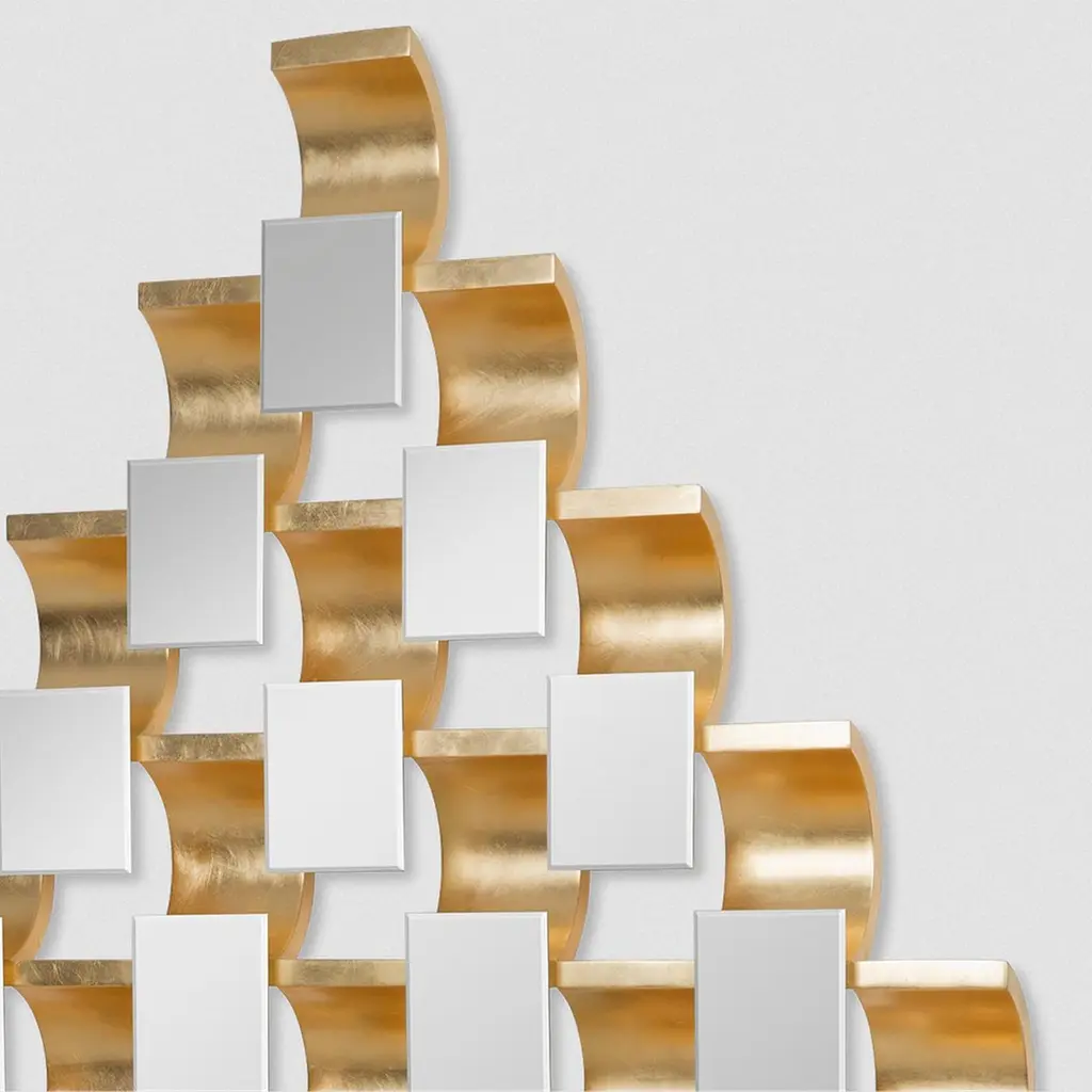 Mirror Antos with structure in solid woodhand-painted painted with gold leaf. Withbevelled edges mirror clear glass. It can behanged vertically or horizontally.Also available with wood in white lacqueredfinish or in black lacquered finish, on request.