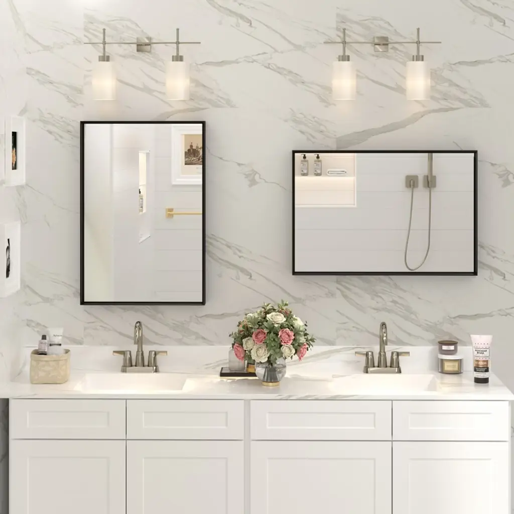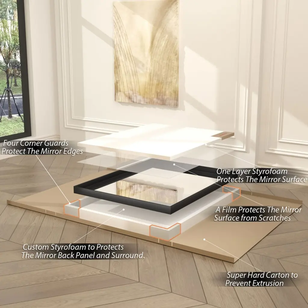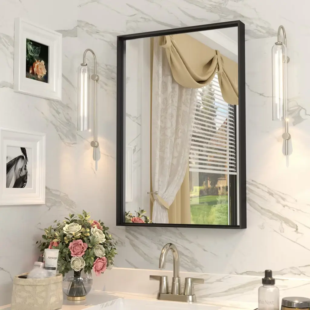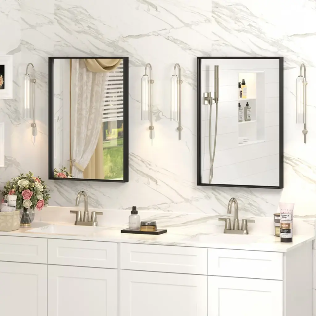 Upgrade your home decor with this 5-year warranty inner-deep framed wall bathroom mirror, featuring an aluminum alloy frame enhanced by a unique brushed/frosted texture achieved through a powder coating process. With high standards of materials and specifications compared to other mirrors, this mirror combines durability and style with its tempered glass material, offering high-definition reflection without distortion. Its versatile design seamlessly complements various decoration styles - modern, glam, industrial, farmhouse, rustic - and fits perfectly in multiple settings such as the bathroom, living room, bedroom, dressing room or hallway. Highlight the beauty of your space with this sophisticated and nearly unbreakable mirror.