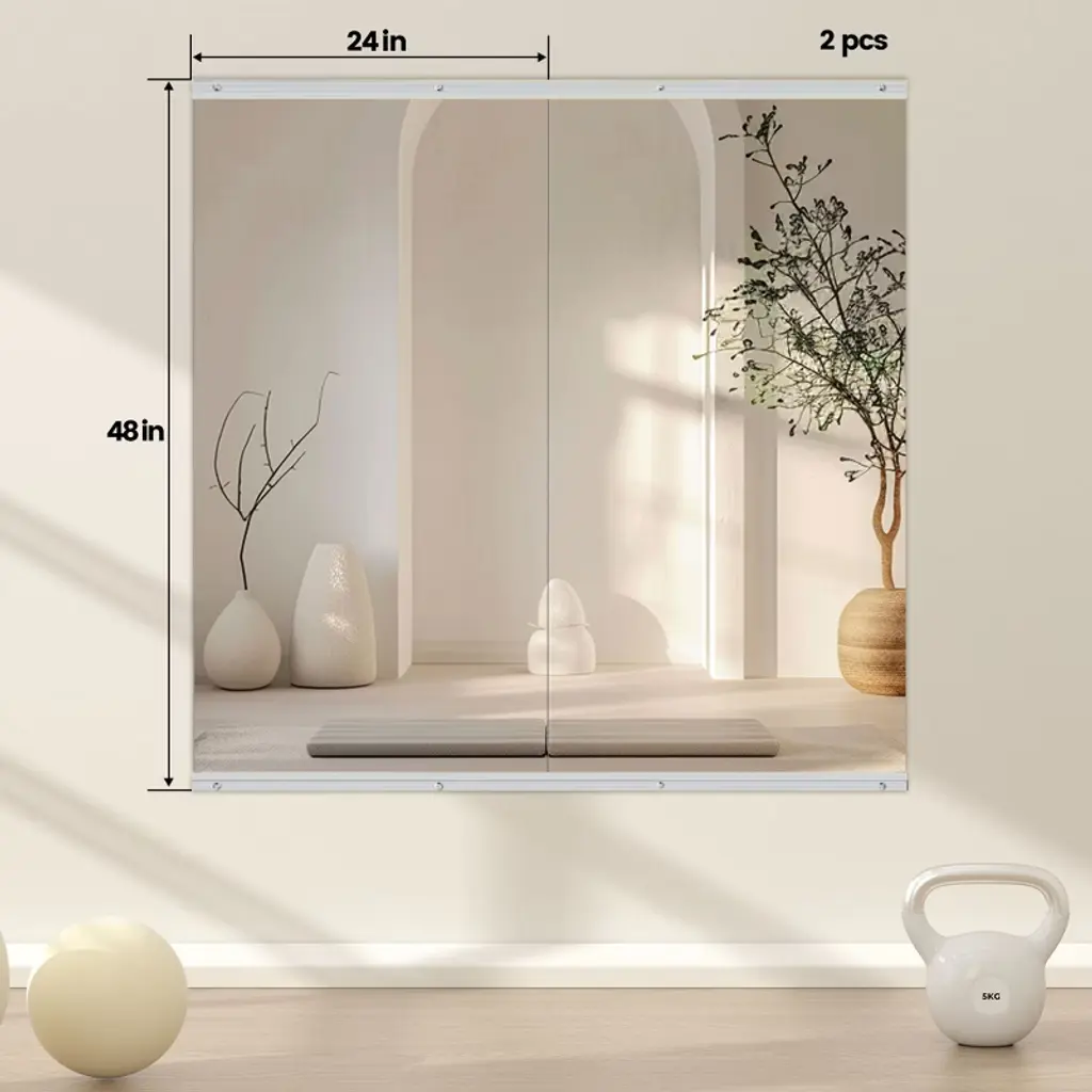 This mirror is suitable for home gym, dance studio, fitness center and any other places where people doing physical activities. It delivers crystal-clear, no-distortion reflections—perfect for adjusting yoga poses, dance routines, or strength training. Easy to install and maintain with included hardware: mount it vertically or horizontally to fit your layout, or combine multiple mirrors for a larger area if needed. Lightweight yet durable, it withstands daily use without compromising style.