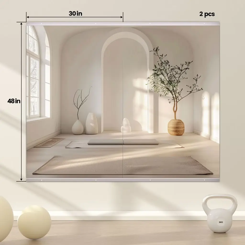 This mirror is suitable for home gym, dance studio, fitness center and any other places where people doing physical activities. It delivers crystal-clear, no-distortion reflections—perfect for adjusting yoga poses, dance routines, or strength training. Easy to install and maintain with included hardware: mount it vertically or horizontally to fit your layout, or combine multiple mirrors for a larger area if needed. Lightweight yet durable, it withstands daily use without compromising style.