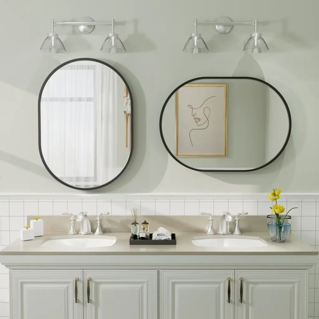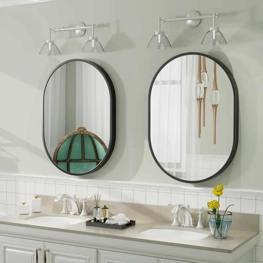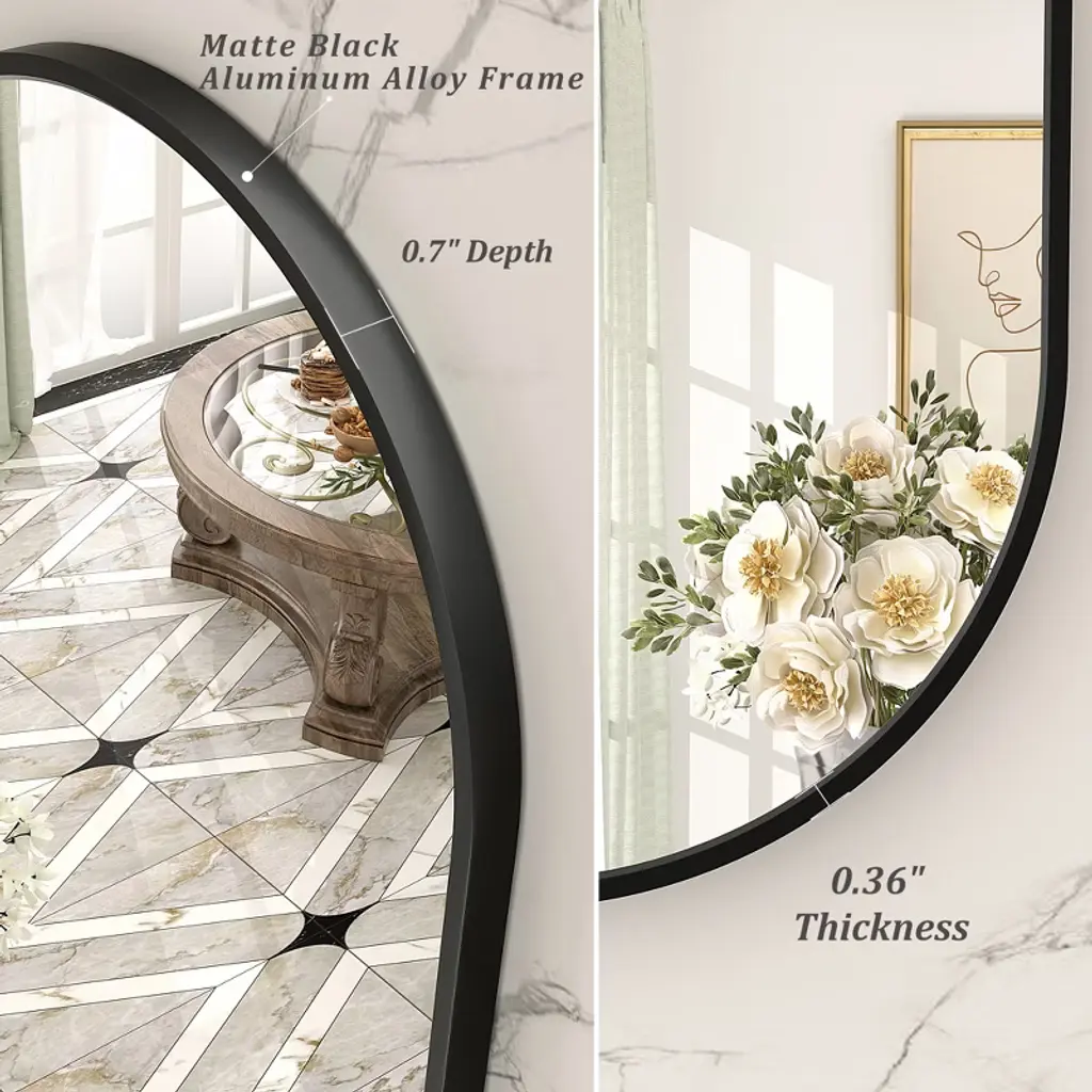Upgrade your home decor with this 5-year warranty classic oval wall bathroom mirror, featuring an aluminum alloy frame enhanced by a unique frosted texture achieved through a powder coating process. With high standards of materials and specifications compared to other mirrors, this mirror combines durability and style with its tempered glass material, offering high-definition reflection without distortion. Its versatile design seamlessly complements various decoration styles - modern, glam, industrial, farmhouse, rustic - and fits perfectly in multiple settings such as the bathroom, living room, bedroom, dressing room or hallway. Highlight the beauty of your space with this sophisticated and nearly unbreakable mirror.