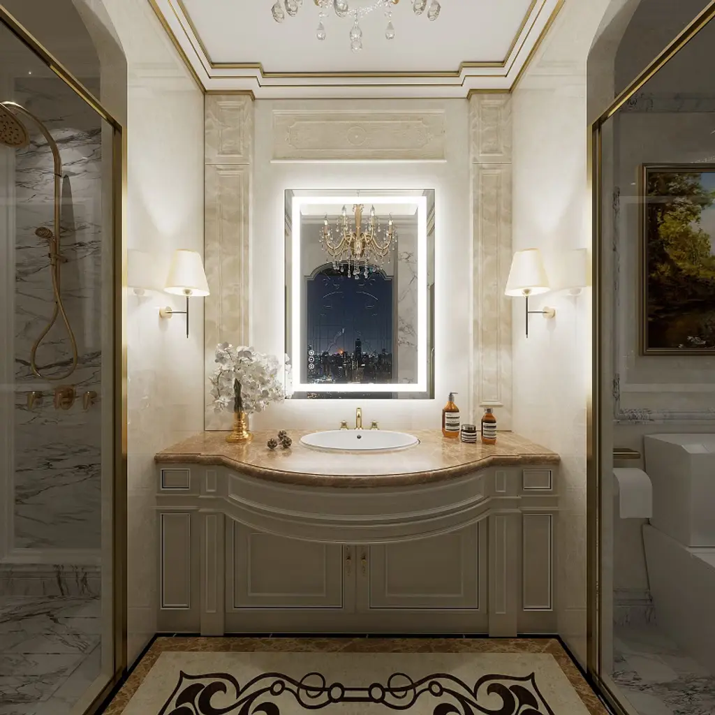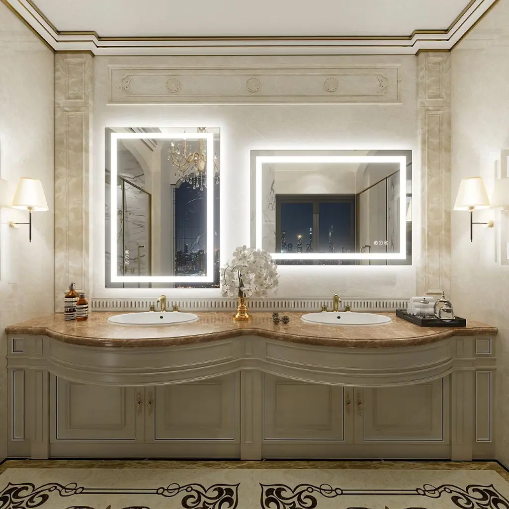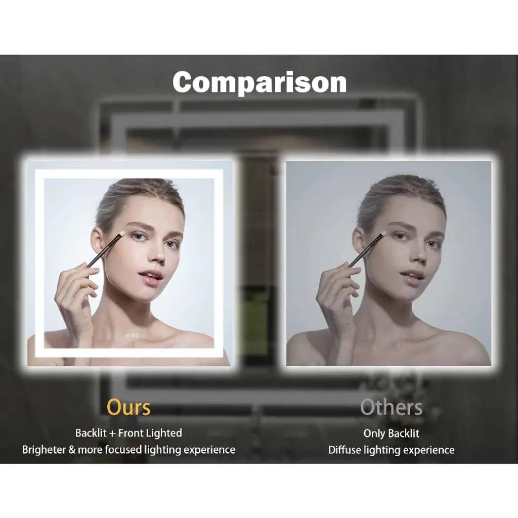 Upgrade your bath with this 3-year warranty LED frameless mirror, featuring 24-volt output voltage super-bright real cri90+ 192 leds/m light strip (others are 12-volt low-power light strips, which are not bright enough.) and tempered glass material (almost unbreakable). 3 color temperature and brightness adjustment, smart anti-fog design, brings a modern look to your space. ___3 Color Temperature(6000k/cold, 4000k/natural, 3000k/warm); Brightness Adjustment(10%-100%); Memory Function(support wall switch); Anti-fog Function & 1-Hour Delayed Shut-off Automatically; Tempered Glass No Damage; Horizontal & Vertical Mounted; Plug-in / Hardwired; ETL Certification.