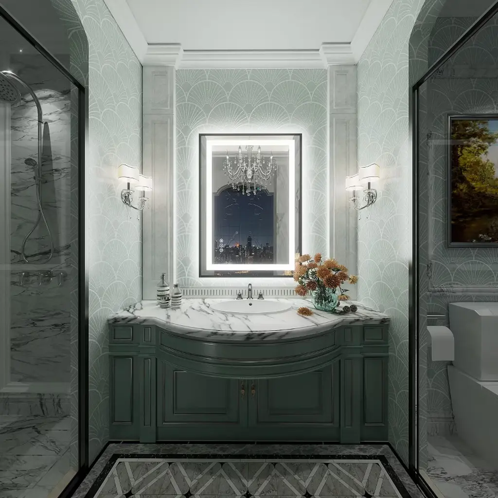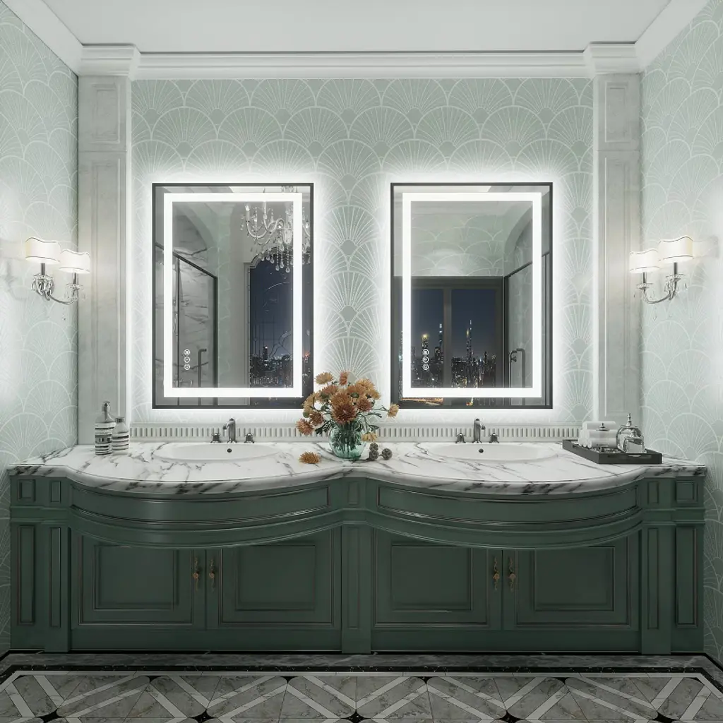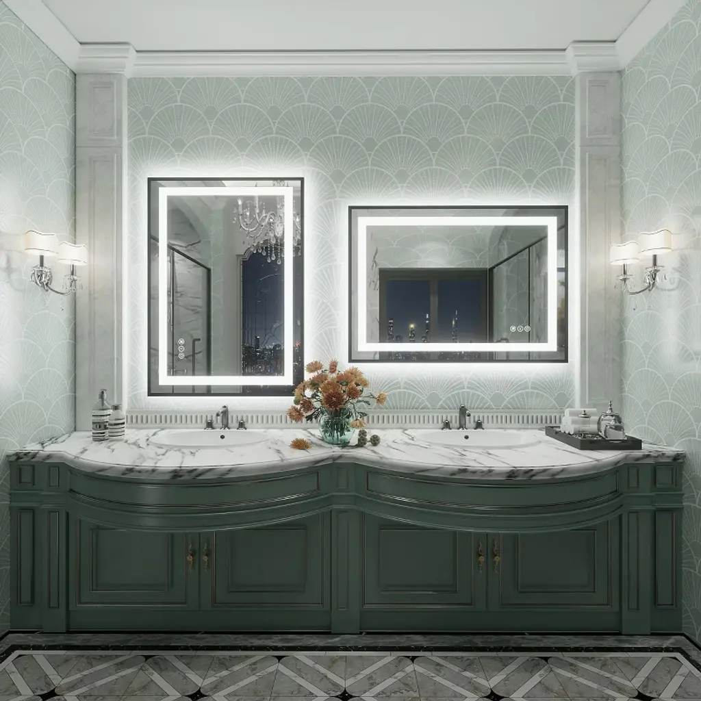 Upgrade your bath with this 3-year warranty LED framed mirror, featuring 24-volt output voltage super-bright real cri90+ 192 leds/m light strip (others are 12-volt low-power light strips, which are not bright enough.), high-strength & durable space aluminum frame and tempered glass material (almost unbreakable). 3 color temperature, brightness adjustment and anti-fog design to meet your smart needs. Sharp and sturdy frame designs can be matched with various decoration styles (modern, glam, industrial, farmhouse, rustic, etc.) and usage scenarios (bathroom, living room, bedroom, dressing room, hallway, aisle, etc.), highlighting the beauty of space.
