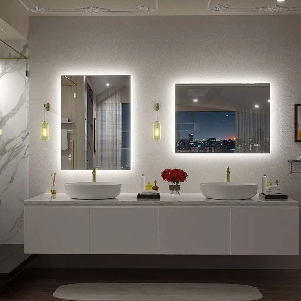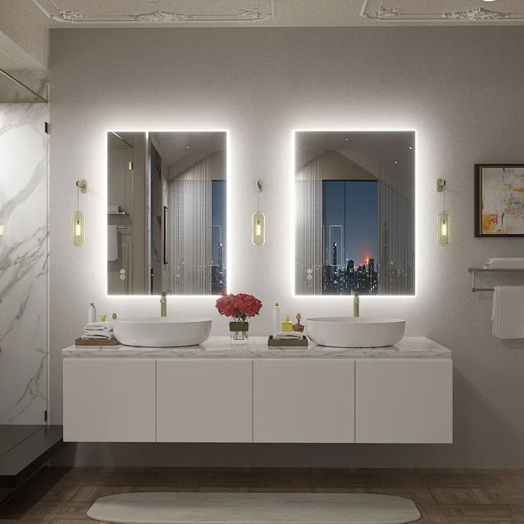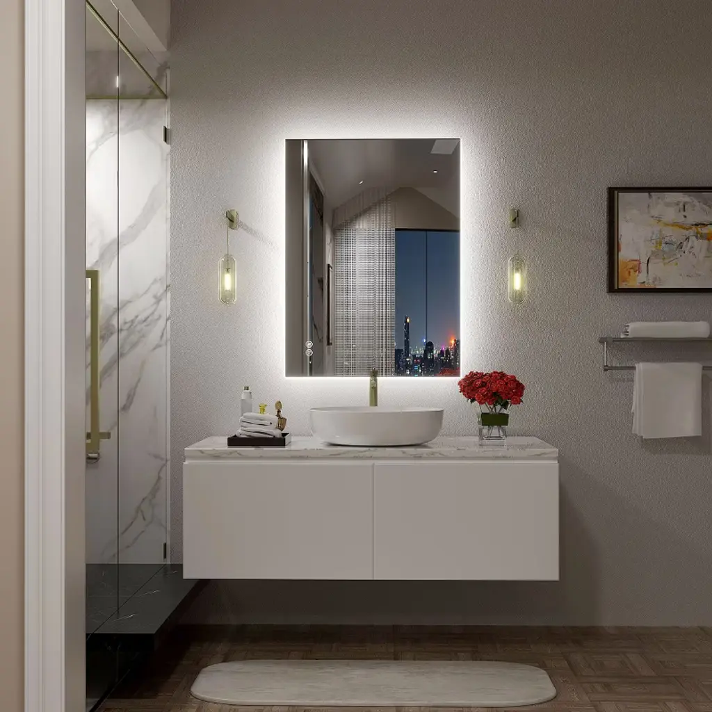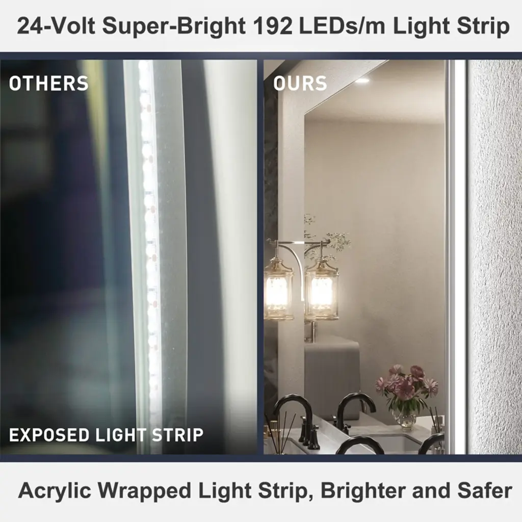 We are the only one that can provide a 3-year warranty in LED mirror category, which means the materials and specification of this product are of a high standard compared to other products, so you can buy with confidence! This product adopts 24-volt output voltage super-bright real CRI90+ 192 LEDs/m light strip (others are 12-volt low-power light strips, which are not bright enough) and tempered glass material (almost unbreakable). 3 color temperature and brightness adjustment, smart anti-fog design, brings a modern look to your home.