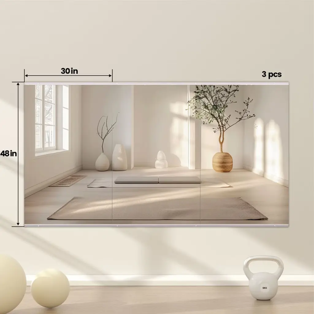 This mirror is suitable for home gym, dance studio, fitness center and any other places where people doing physical activities. It delivers crystal-clear, no-distortion reflections—perfect for adjusting yoga poses, dance routines, or strength training. Easy to install and maintain with included hardware: mount it vertically or horizontally to fit your layout, or combine multiple mirrors for a larger area if needed. Lightweight yet durable, it withstands daily use without compromising style.