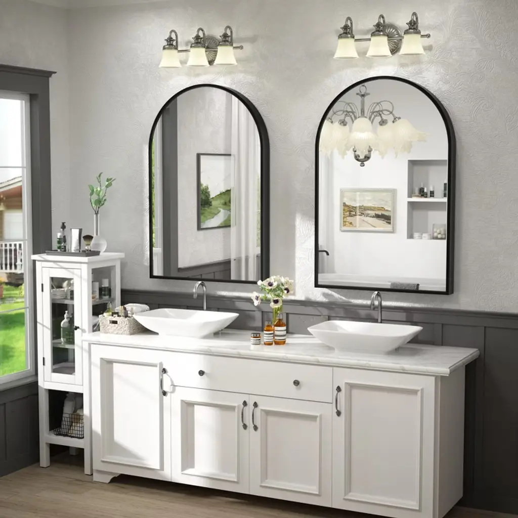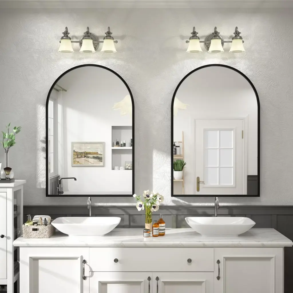 Upgrade your home decor with this 5-year warranty classic arch wall bathroom mirror, featuring an aluminum alloy frame enhanced by a unique frosted texture achieved through a powder coating process. With high standards of materials and specifications compared to other mirrors, this mirror combines durability and style with its tempered glass material, offering high-definition reflection without distortion. Its versatile design seamlessly complements various decoration styles - modern, glam, industrial, farmhouse, rustic - and fits perfectly in multiple settings such as the bathroom, living room, bedroom, dressing room or hallway. Highlight the beauty of your space with this sophisticated and nearly unbreakable mirror.