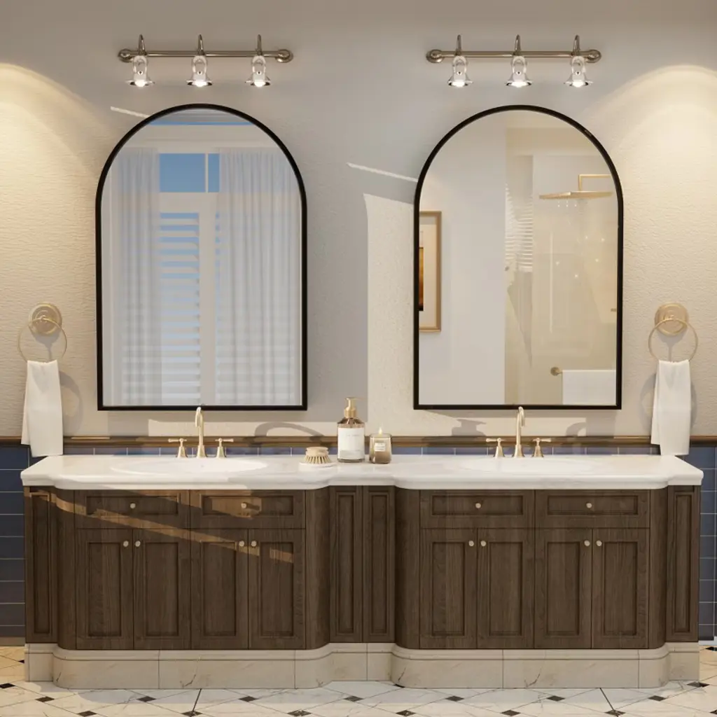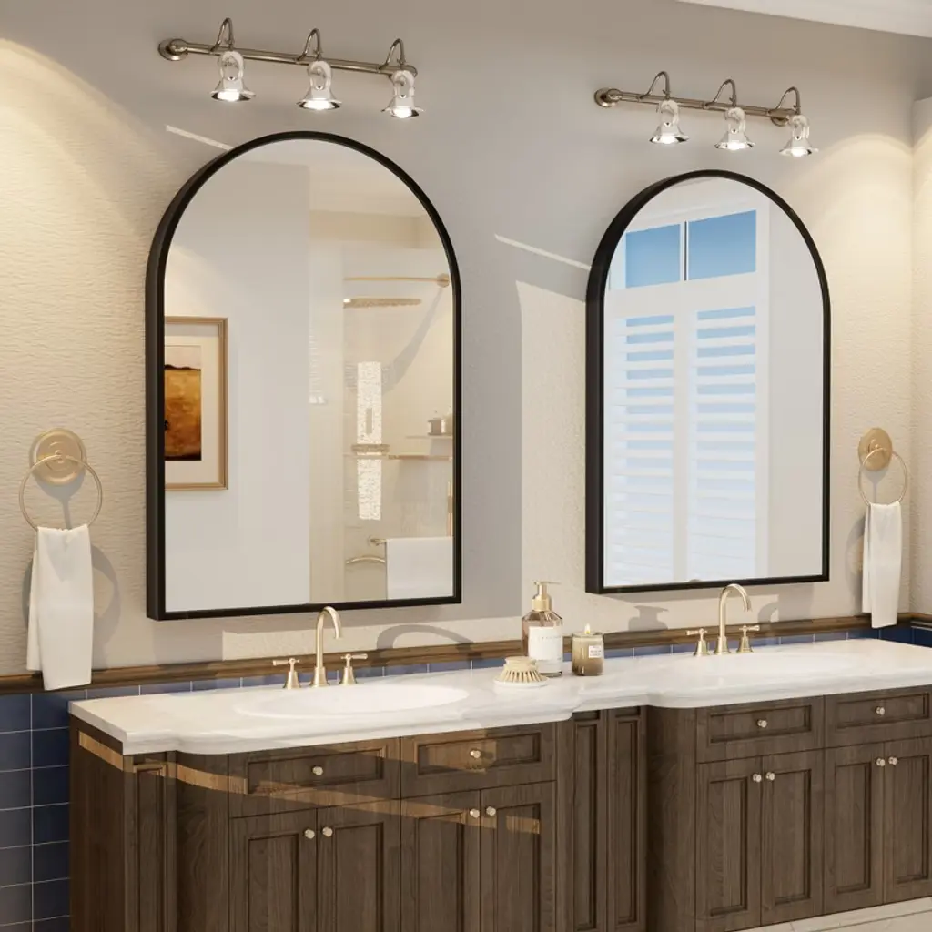 Upgrade your home decor with this 5-year warranty classic arch wall bathroom mirror, featuring an aluminum alloy frame enhanced by a unique frosted texture achieved through a powder coating process. With high standards of materials and specifications compared to other mirrors, this mirror combines durability and style with its tempered glass material, offering high-definition reflection without distortion. Its versatile design seamlessly complements various decoration styles - modern, glam, industrial, farmhouse, rustic - and fits perfectly in multiple settings such as the bathroom, living room, bedroom, dressing room or hallway. Highlight the beauty of your space with this sophisticated and nearly unbreakable mirror.