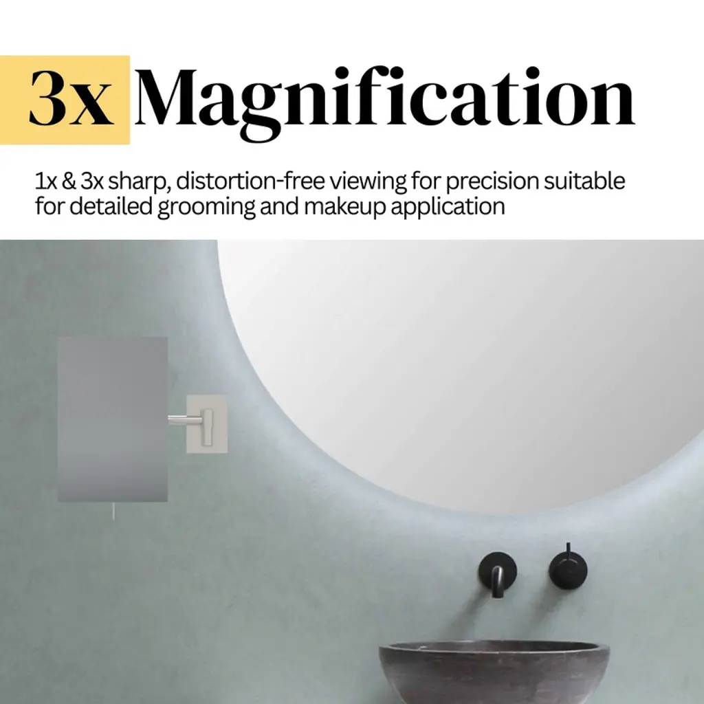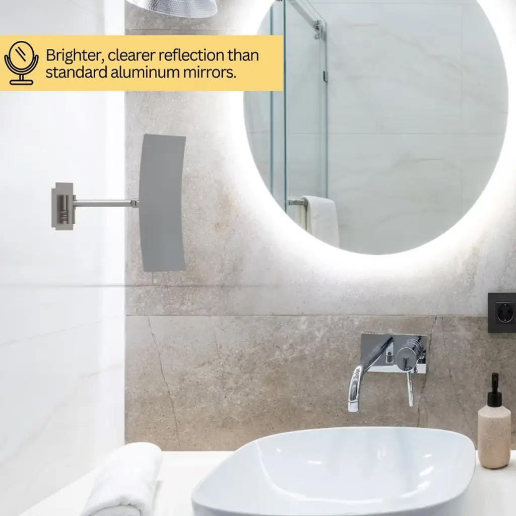At APTATIONS, we are a family business and a global business, obsessed with mirrors, inspired by art, and motivated by competition. Our passion is to reflect you at your best! For more than 30 years, we’ve only sold mirrors – first through our predecessor Kimball & Young – and now as Aptations. Because we only sell mirrors, we sell the best mirrors for the best value that you can get anywhere. Since we’ve been doing this since the mid-1980s, we’ve seen a lot of fads and trends come and go. But through it all, there have always been two really big reasons for having the right mirror: We want you to look great and have total confidence when you go out into the world, and we want your bathroom to look great too. Elevate your grooming routine with the Aptations Rectangular Wall Mirror, designed to combine functionality and style. Measuring 6.25" x 9.5", this mirror features 3X magnification, making it perfect for detailed makeup application and grooming. Ideal for use in the bedroom or bathroom, it offers an 8.5" arm extension for flexible positioning.