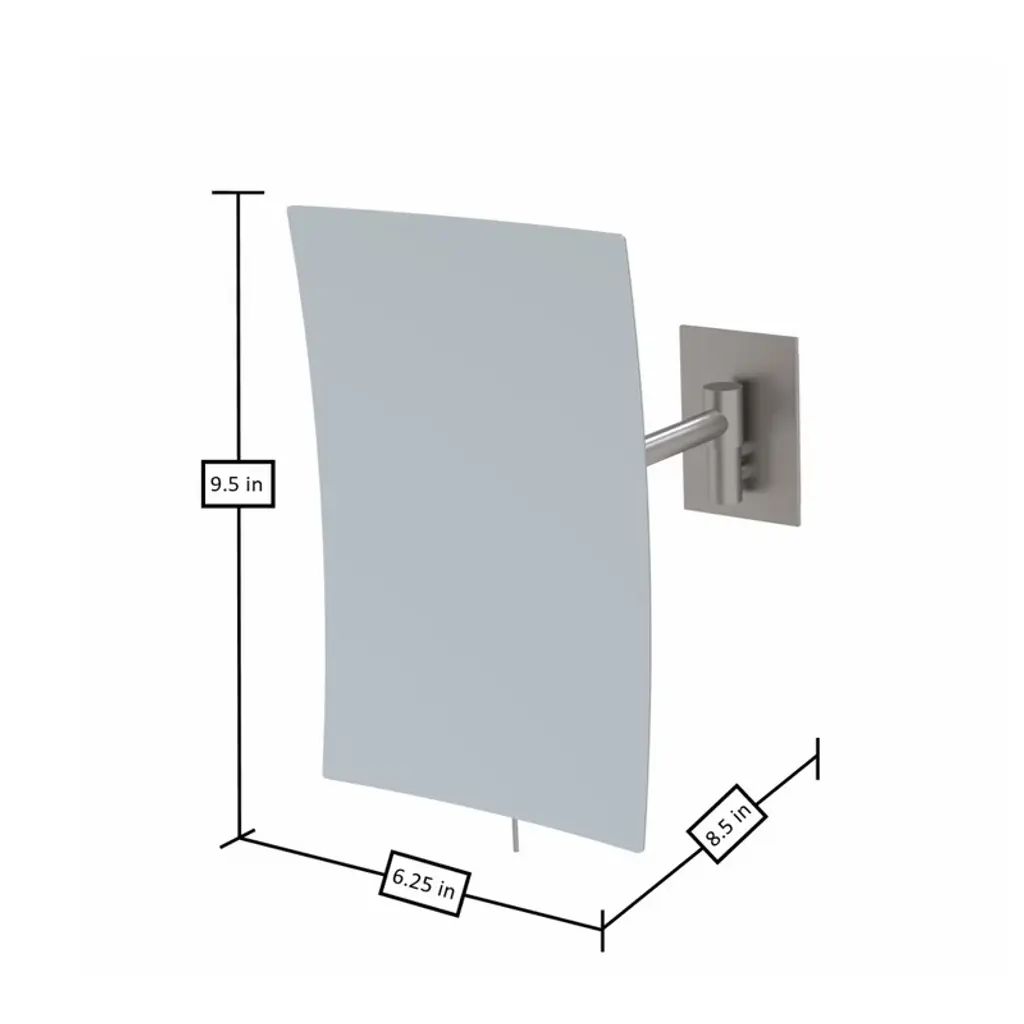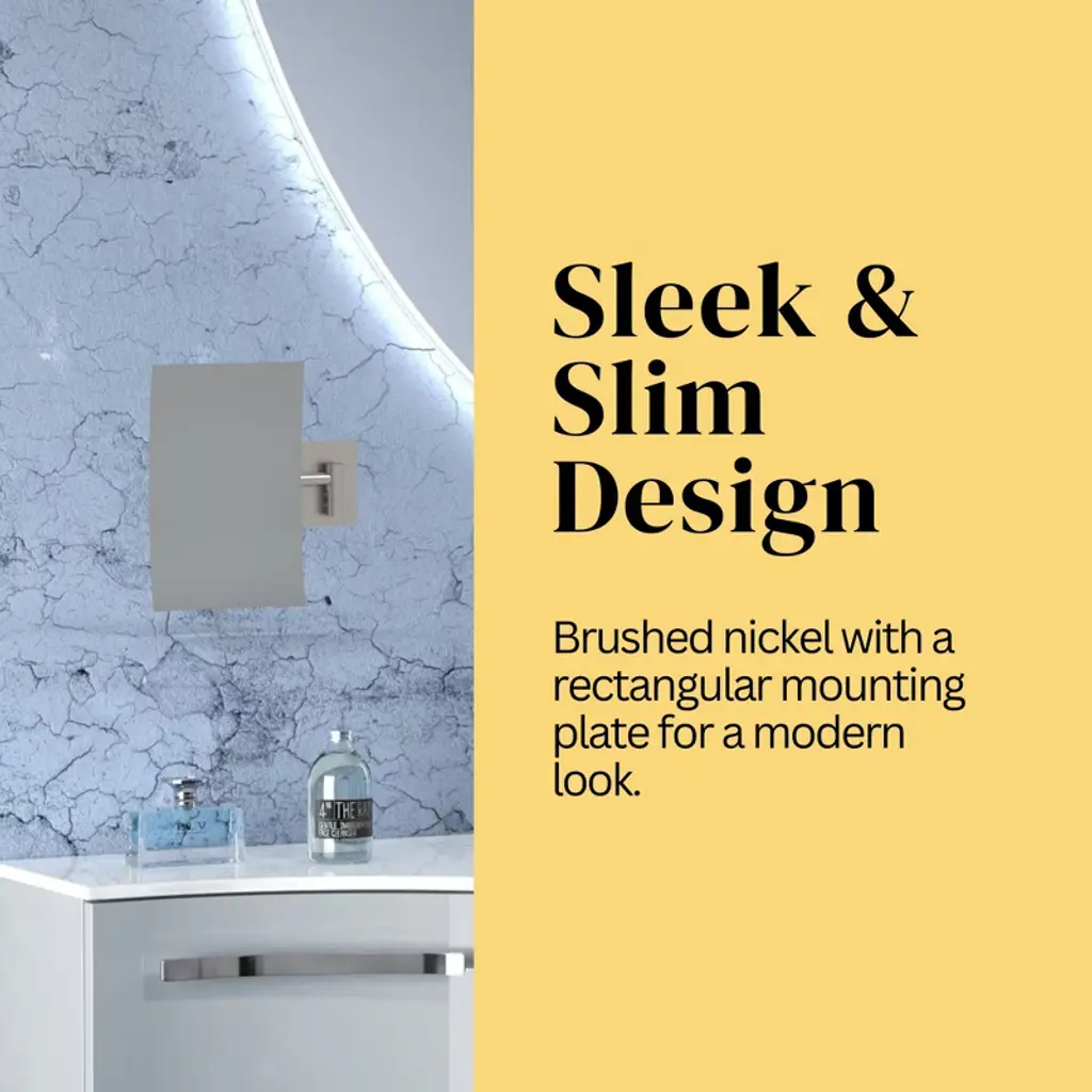 Aptations Rectangular Wall Mirror (6.25" X 9.5") - 3X Magnification, Wall Mount With 8.5" Arm Extension, Concealed Mounting Hardware (Brushed Nickel)