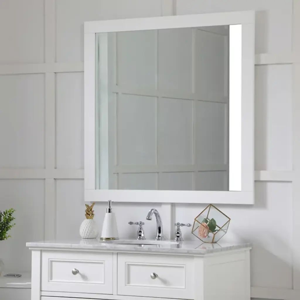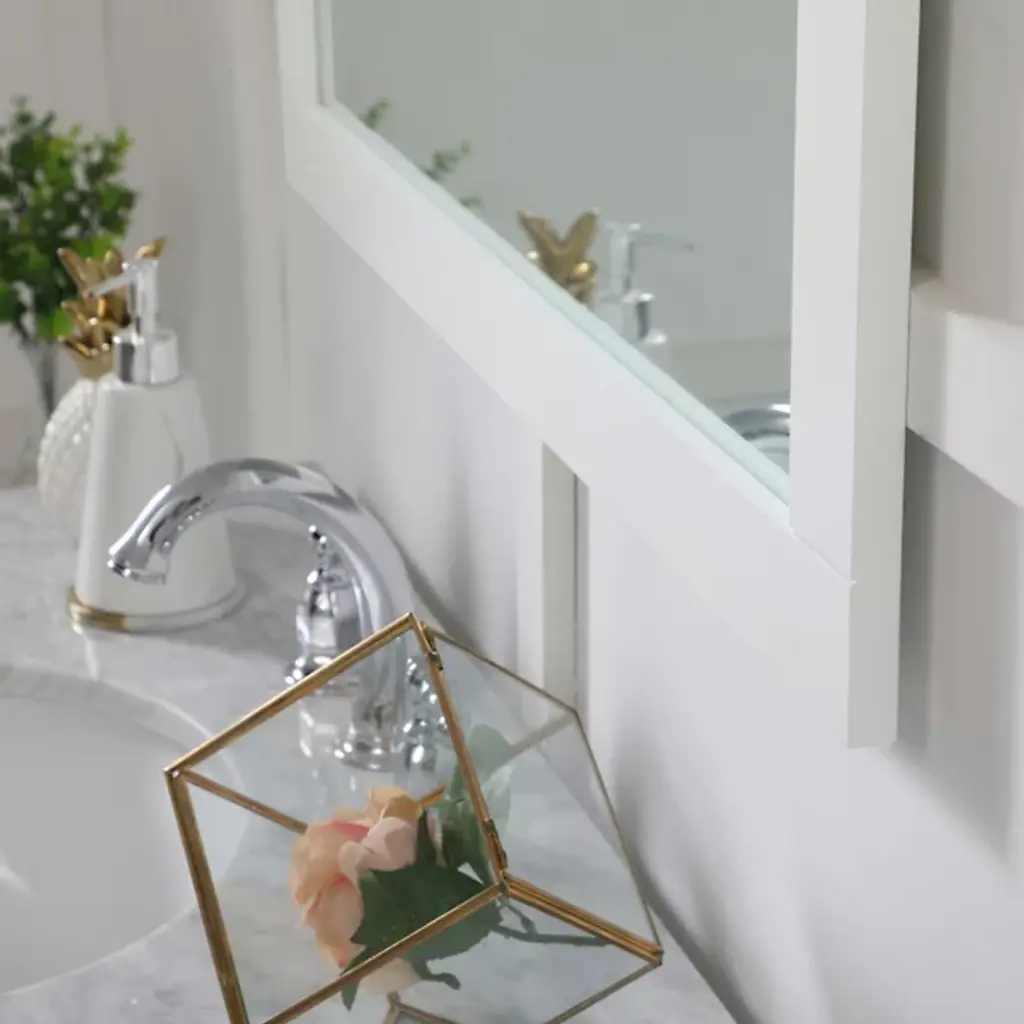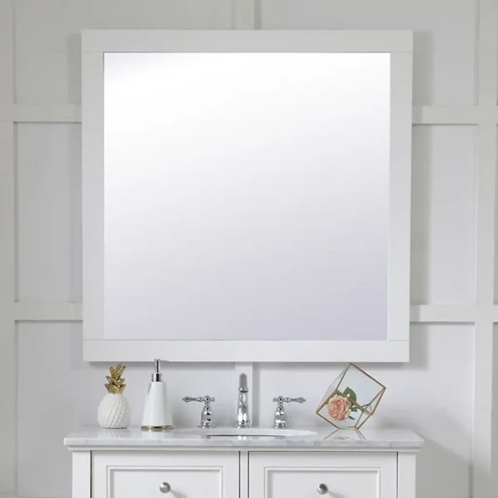 The Aqua Square Vanity Mirror from Elegant Lighting combines bold style with minimalist elegance, making it an ideal accent for any space. Framed with a clean white border, it adds a touch of sophistication to vanities and walls alike. Its modern design effortlessly enhances room ambiance, blending with various decor styles for a timeless, refined look.