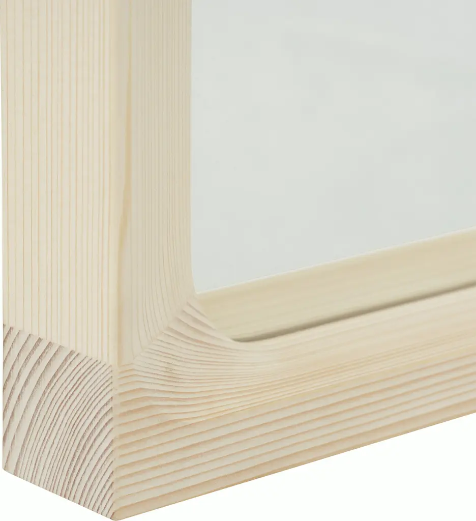 With subtle design details like a deep, chamfered frame wood frame with softly curved corners, the Arced Mirror evokes a window that invites you to look further. Australian designer Rhys Cooper's first design for Muuto, the mirror features an FSC-certified spruce wood frame whose carved depth highlights the beauty of the material, while the softly colored stain brings out the natural wood grain. This generously sized mirror will enlarge the sense of space and light in any room. Made in TK.