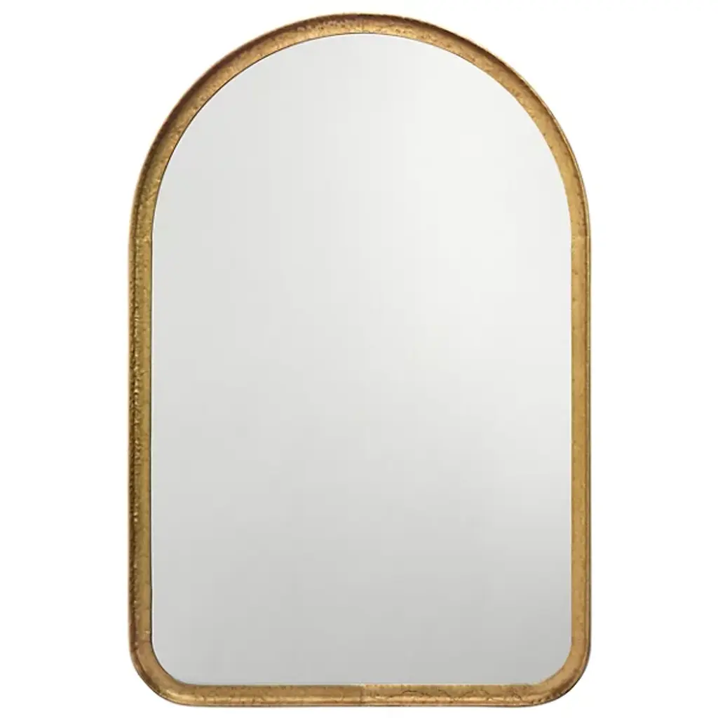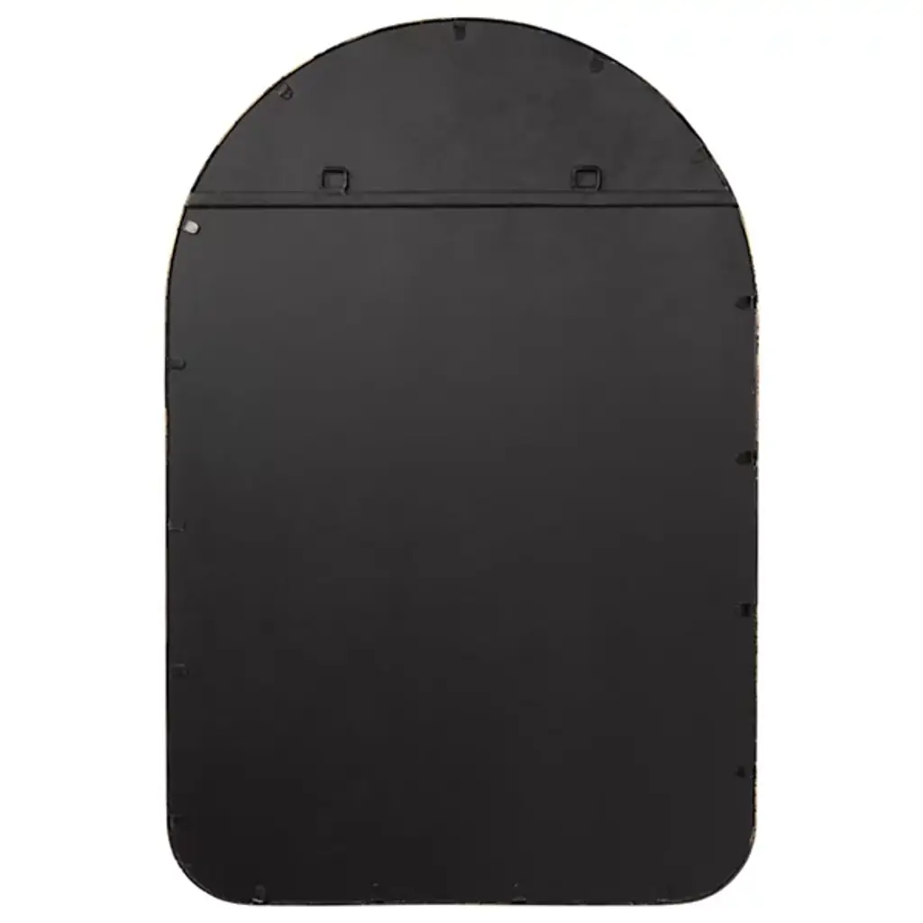 The Arch Mirror by Jamie Young Co. elevates the allure of the decorative mirror by infusing its metal frame with genuine iron leaf layers, meticulously applied to achieve a rustic aesthetic. With a commanding height of three feet, its fusion of architectural inspiration and sleek simplicity creates a striking statement piece that effortlessly captivates attention, adding a touch of refinement to any space.