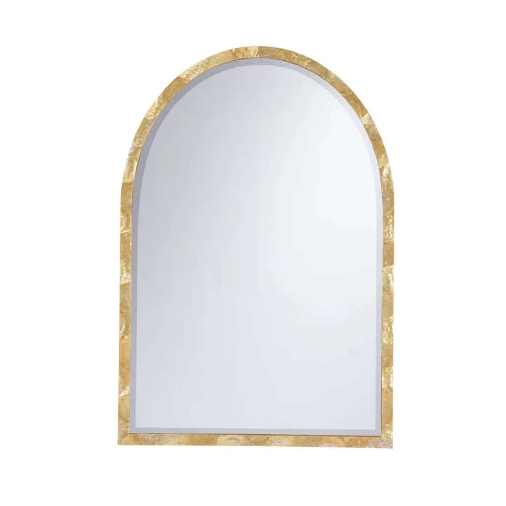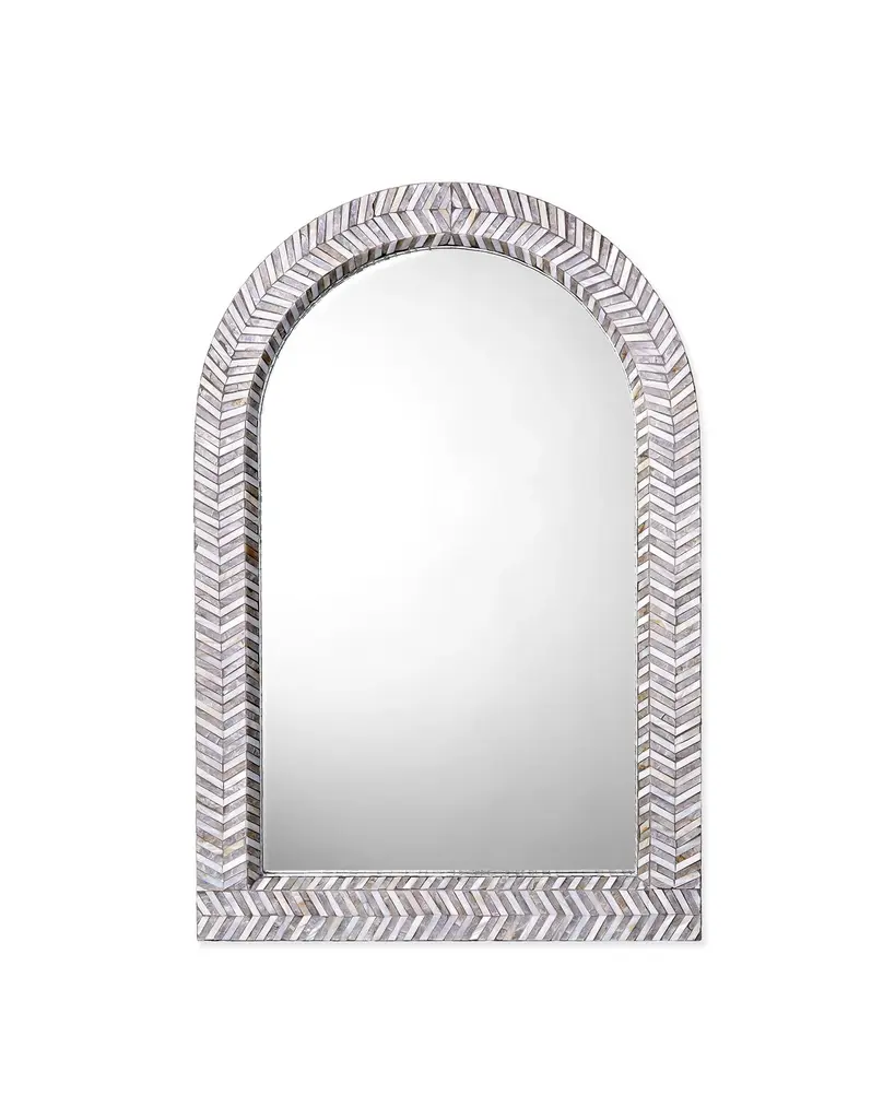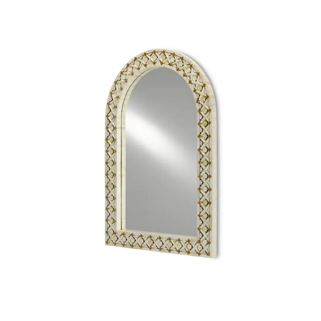 Arched Hollywood Regency White Camel Bone Mirror, A Pair