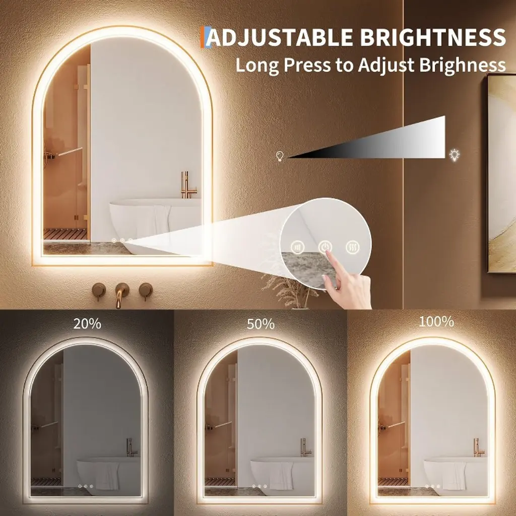 Arched Led Bathroom Mirror, 24"x36" Gold Bathroom Mirrors With Anti-fog, With Frontlit And Backlit Dimmable Led Mirror£¬3 Color Temperature