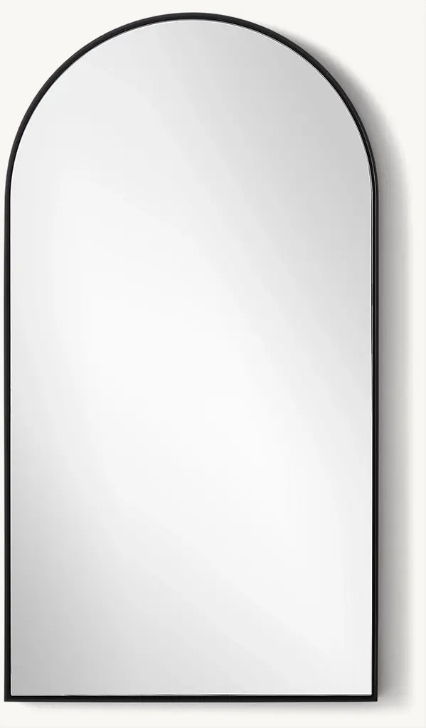 Our mirror balances classical proportions with the minimalism of 1950s design. Set within a thin metal frame, the arched profile adds bold architectural presence while creating the illusion of dimension and space.