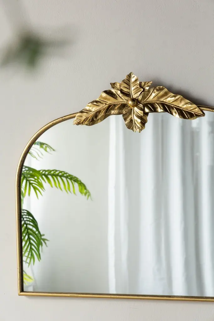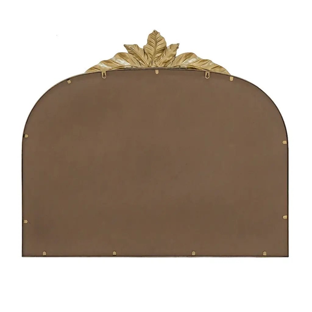 Enjoy the elegance of this arched wall mirror, designed with a durable metal frame for lasting beauty. The nature-inspired adornment at the top adds a unique touch, enhancing any room with its charm. Its versatile design complements a range of interior styles, making it a perfect addition to your space. With its sturdy construction, this mirror is both a functional and stylish accent in your home. 39.5" x 35"