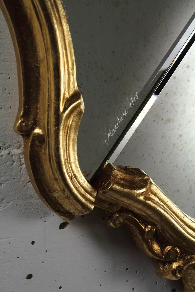 Arciduca Wall Mirror with Gold-Plated Wooden Frame by Barberini & GunnellLimited Edition of 15 + 2 AP + 1 p.Dimensions: W 45 x H 75 cm. Materials: Mirror, gold-plated wood, and MDF.Limited Edition, signed and numbered by the artists, comes with a Certificate of Authenticity. Please contact us. Please contact us.Barberini & Gunnell, founded in 2009 in Ancona, Italy by architects Francesco Barberini and Nina A. Gunnell, is the result of a philosophy, thinking of design and architecture as a work of art. The architectural and interior design activity carried out by ‘The Studio’ complements the creations of ‘The Atelier’, which are the result of an artistic playground and highly skilled craftsmanship, a place where artworks and sculptures come to life.The Studio Barberini & Gunnell designs high-end residential and retail spaces that are out of the ordinary and beyond fashion. Barberini & Gunnell creates refined, timeless, and harmonious environments by inserting collectible design, “talking pieces” that create unique and bespoke homes according to the client’s eclectic and aesthetic desires.The Atelier Barberini & Gunnell creates artworks and collectible designs, one-off pieces, and limited editions for a small niche of high-end projects; bespoke solutions for luxury and ultra-luxury projects all over the world.The choice of the most precious materials, the maniacal cure for detail is the basis of our modus operandi aiming to create timeless pieces, using marine grade stainless steel, brass, cast bronze, precious wood essences, marbles, onyxes, semi-precious gemstones, crystal glass, together with the most sophisticated technologies and quality craftsmanship.This allows us to work for clients like Four Seasons Hotels, The Ritz Carlton, Regent Seven Seas Cruises, Louis Vuitton, Cartier, Dior, Paramount Pictures, Peter Marino Architects, Sotheby’s, Bonhams, Foundation of Maestro Andrea Bocelli, Ridley Scott (House of Gucci) besides our private collectors and clients.Values such as sustainability, the use of natural materials, the rediscovery of eco-sustainable craftsmanship, and the protection of refined and ancient techniques that are increasingly being lost are the basis of the design.Barberini & Gunnell’s signature works are exhibited at international art fairs such as Art Basel Design//Miami, Art Miami, Art Basel Switzerland, PAD London, PAD Genève, PAD Paris, PAD Monaco, Salon Art+Design New York…