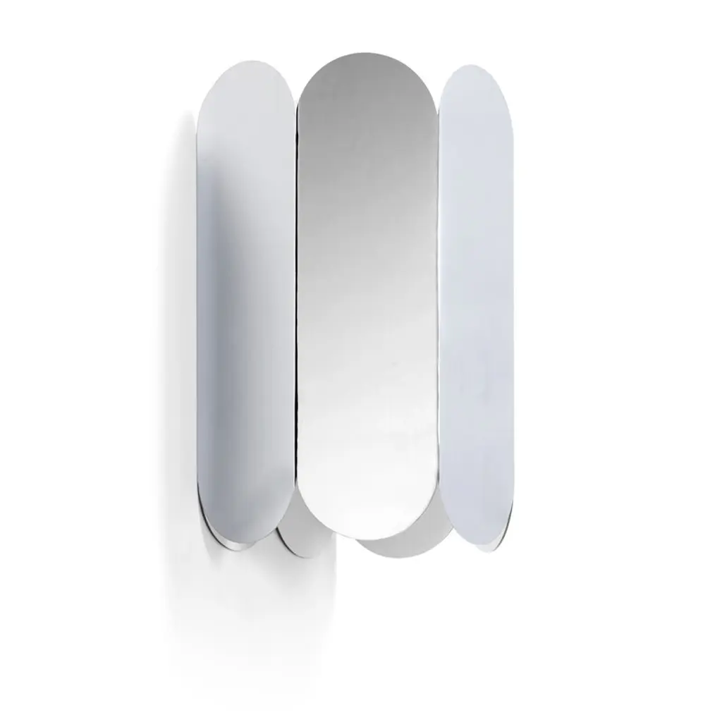 HAY’s Arcs Wall Sconce is an atmospheric eye-catcher that creates a soft play of light and shadows to the room. The eye-catching and graphic wall-mounted lamp is made of bent sheet metal steel and finished with a shiny mirror surface. Designed by Muller Van Severen, the Arcs collection is based on simple oval shapes: when joined together, the pieces create captivating silhouettes where soft and straight lines meet. The Arcs series consists of various sizes of candleholders, vases and lighting in a range of finishes. You can create a vibrant yet coherent whole by mixing different colors together.