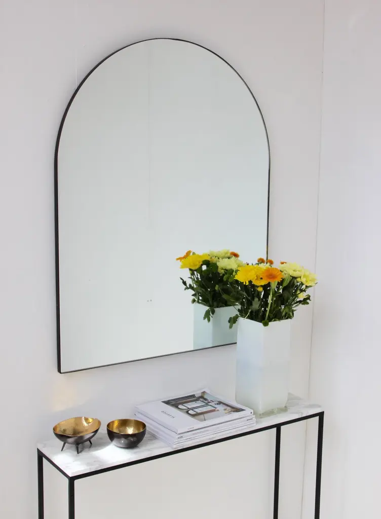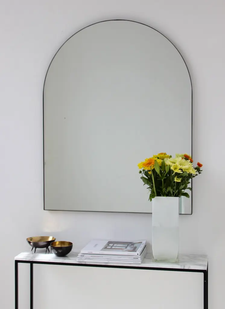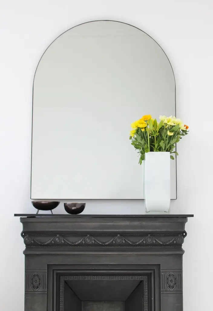 Delightful handcrafted overmantel Arcus™ arched mirror with a bronze patina brass frame. Designed and handcrafted in London, UK.Fitted with an ingenious French cleat (split batten) system so they may hang flush with the wall. A Z bar system is available for all sizes on demand.Please note that the bronze patina finish of our frames is a highly skilled and specialised process. The finish is not plated but created from the base metal itself. It is therefore a very subjective and artistic process carried out by our talented craftsmen. No two frames can truly be identical, which is part of their charm as they are truly unique. Any sample or images provided to obtain your approval on the desired finish or on our website or any other promotional material are therefore for guidance only.This mirror is fully customisable.Shipped safely and insured worldwide. All our mirrors are made on demand. Fabrication lead time for this particular mirror is approximately 4 to 5 weeks. Our mirrors are always shipped by courier express. Shipping via courier express typically requires 1 to 2 days to the UK, or 2 to 7 days outside the UK depending on the destination.Dimensions: w 75 x h 95 x d 1.8 cm / w 29.5'' x h 37.4'' d 0.7'' (customisable)Mirror tint options: std. silver, bronze, black, peach or blue mirror.Frame finish options: Brushed brass, polished brass, bronze patina, black, white, red, blue, green or bespoke colour.Please contact us for a quote for any bespoke specifications or added options.ORDERS OF MULTIPLE MIRRORS OF THE SAME TYPE: Please contact us to receive a Packing and Shipping quote when ordering multiple mirrors of the same type. An order for multiple mirrors of the same type may not be accepted without extra packing and shipping fees. Thank you.