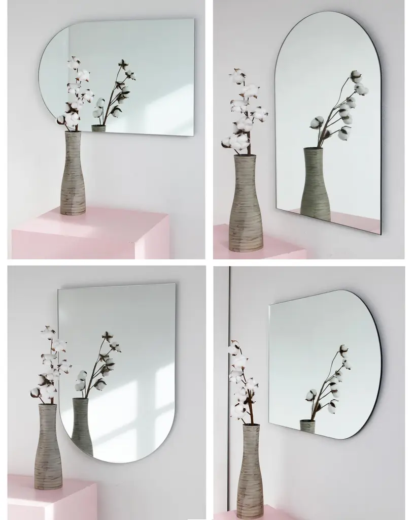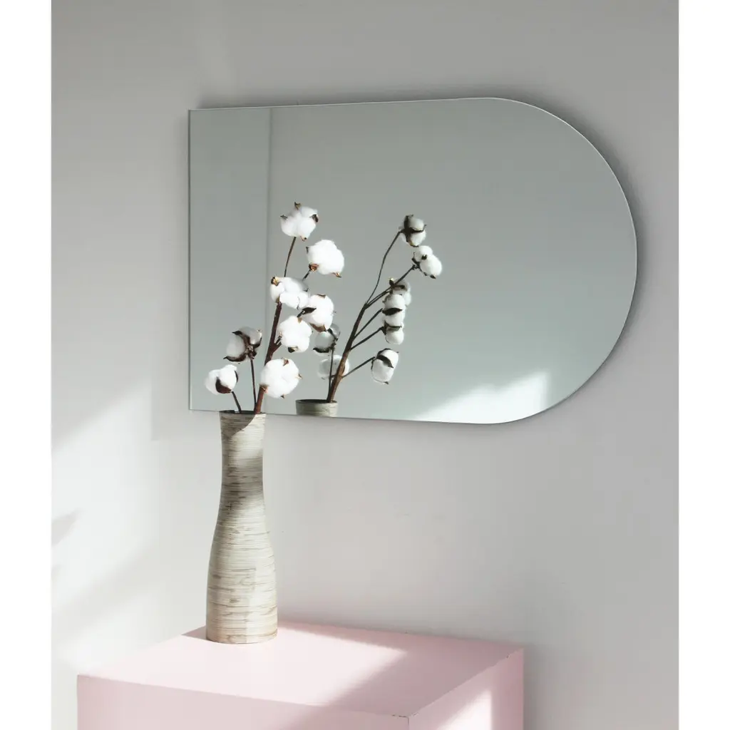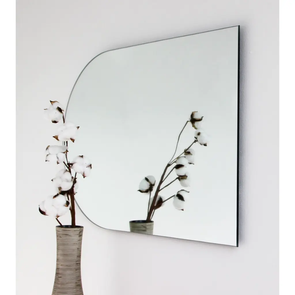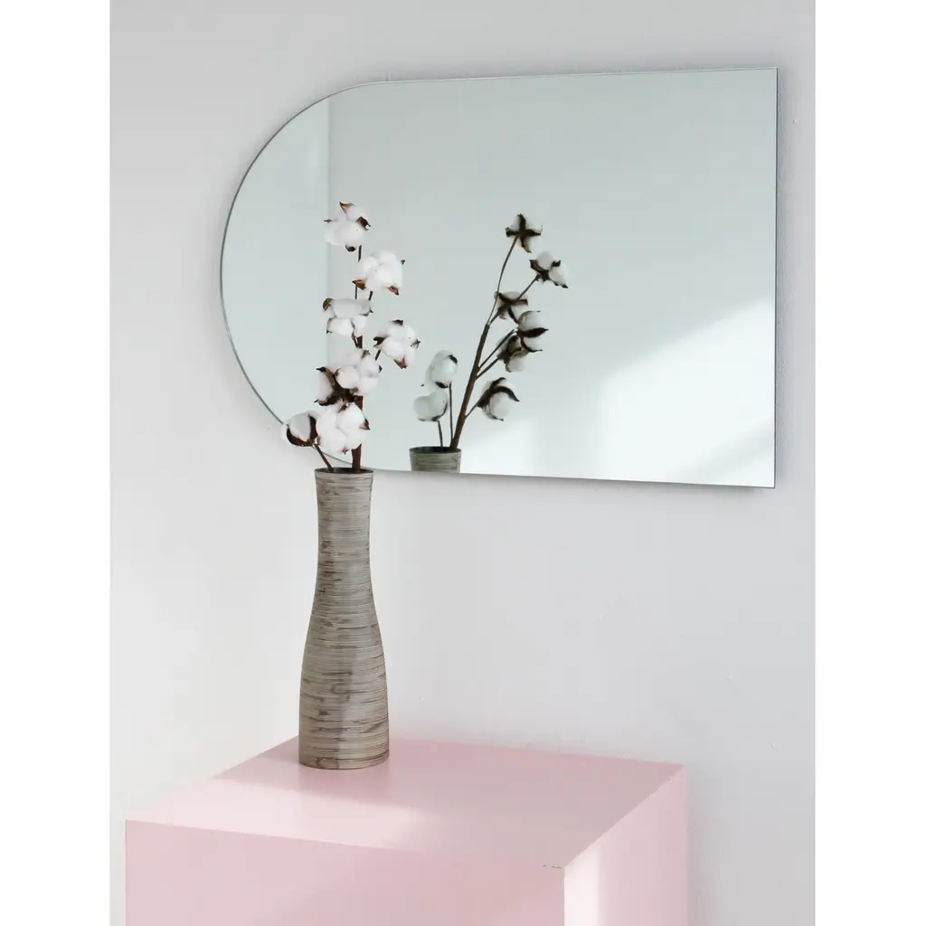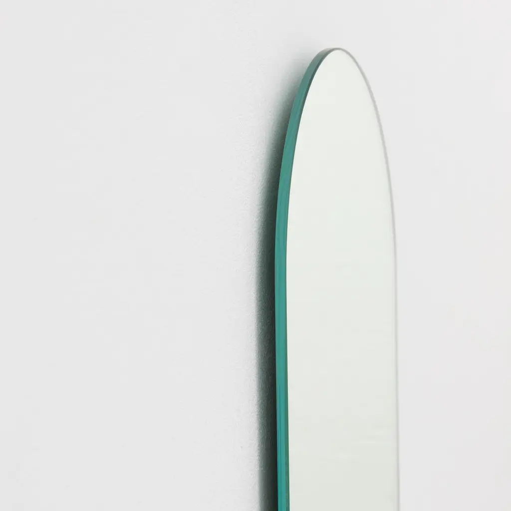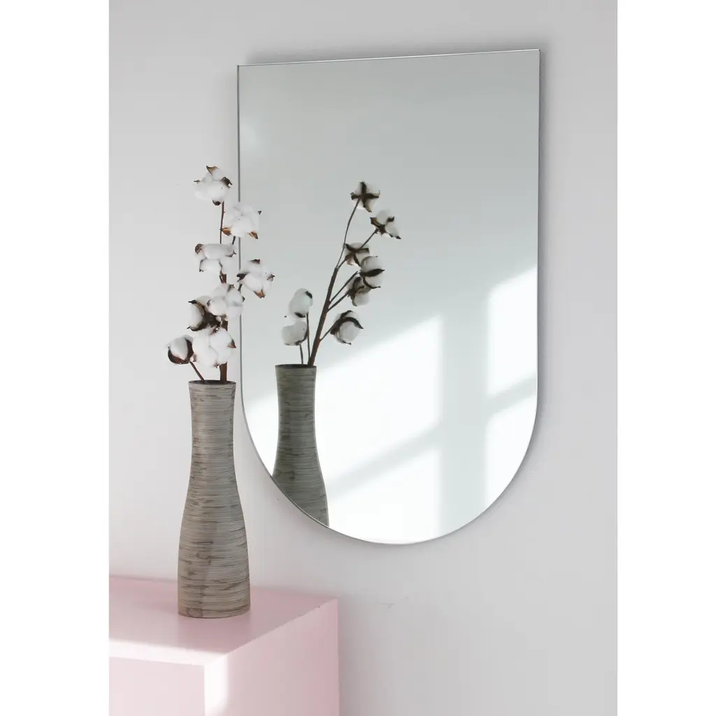 Minimalist arch shaped frameless mirror that can be hung in 4 different positions. Quality design that ensures the mirror sits perfectly parallel to the wall. Designed and made in London, UK.Fitted with professional plates not visible once installed for an easy and safe installation. Lined at the back with a quality protective film. Supplied with all accessories, including screws and wall plugs.This mirror is fully customisable. The mirror in the images illustrates a a large size, measuring 46cm x 71cm x 0.6cm / 28" x 18.1'' x 0.24’’Shipped safely and insured worldwide. All our mirrors are made on demand. Fabrication lead time for this particular mirror is approximately 3 to 4 weeks. Our mirrors are always shipped by courier express. Shipping via courier express typically requires 1 to 2 days to the UK, or 2 to 7 days outside the UK depending on the destination.Available in the following sizes:Small: 27cm x 68cm x 0.6cm / 26.8'' x 10.6'' x 0.24’’Medium: 37cm x 56cm x 0.6cm / 22" x 14.6'' x 0.24’’Large: 46cm x 71cm x 0.6cm / 28" x 18.1'' x 0.24’’Extra Large: 48cm x 97cm x 0.6cm / 39.4" x 19.7'' x 0.24’’or any bespoke dimension.Available options:- bevelling - back-illumination creating a halo effect - demister padPlease contact us for a quote for any bespoke specifications or added options.This mirror is fully customisable. Shipped safely worldwide.Note that the standard hanging position for this mirror is vertical. If you wish for the mirror to be hanged horizontally, please let our team know and we may adapt the hanging system accordingly.ORDERS OF MULTIPLE MIRRORS OF THE SAME TYPE: Please contact us to receive a Packing and Shipping quote when ordering multiple mirrors of the same type. An order for multiple mirrors of the same type may not be accepted without extra packing and shipping fees. Thank you.