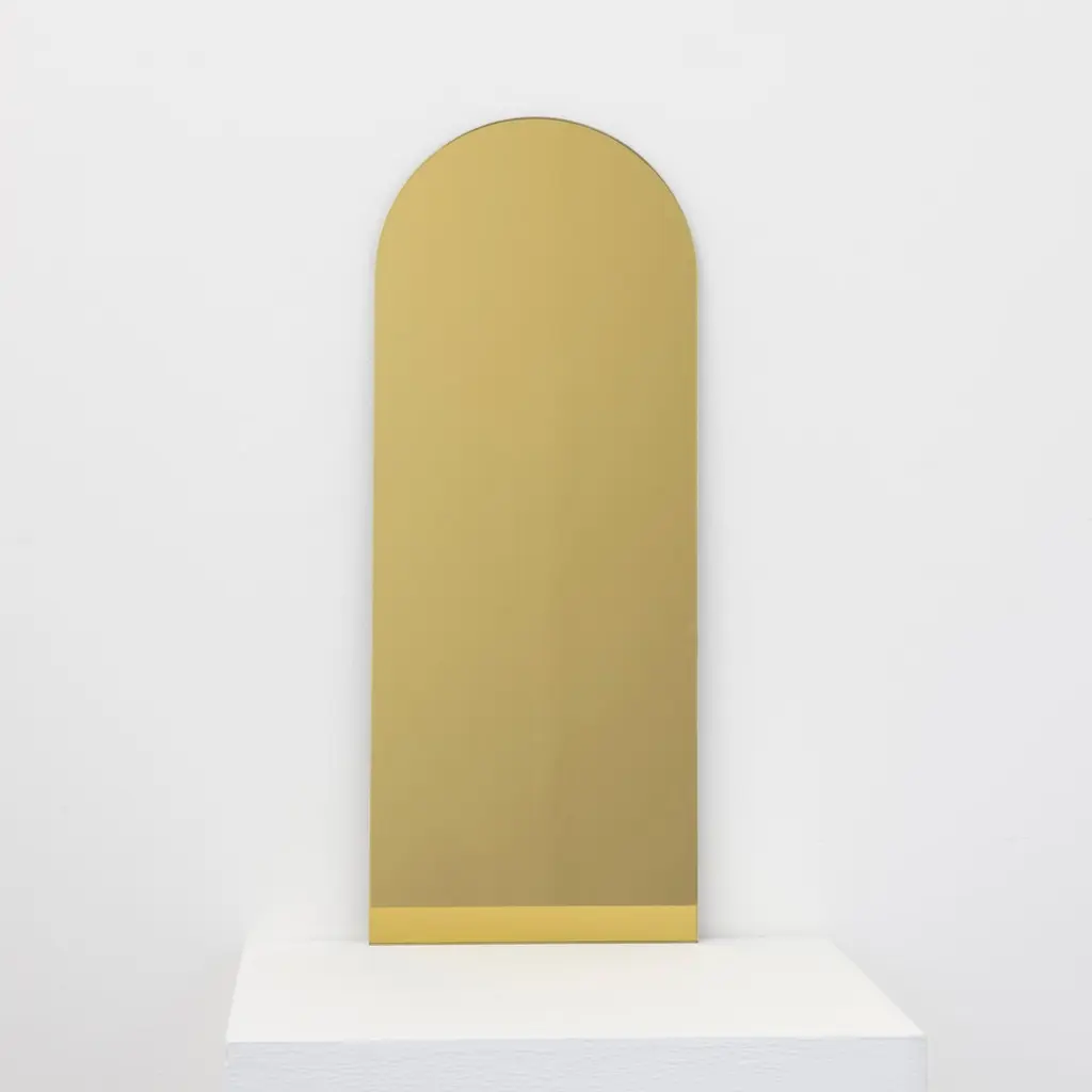 Arcus Gold Tinted Arched Frameless Minimalist Mirror With Floating Effect, Xl