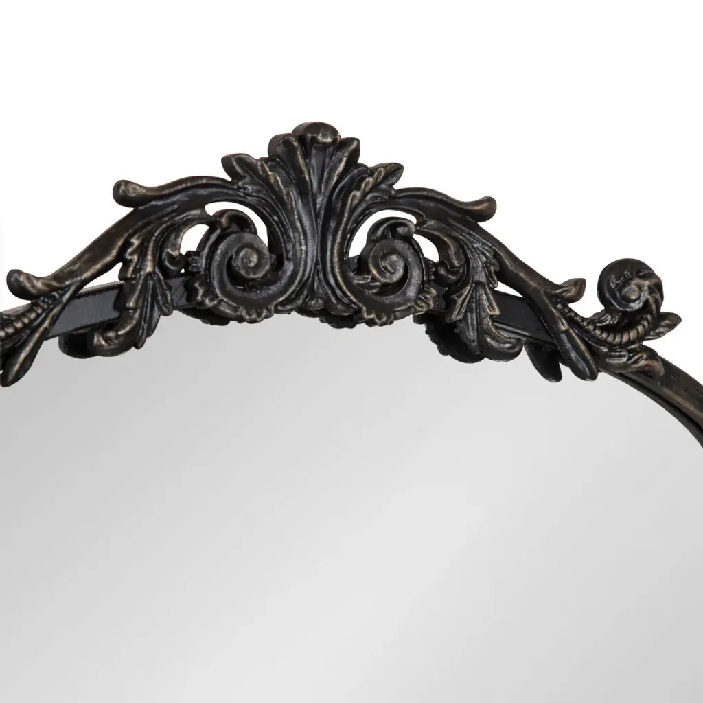 The Arendahl wall mirror brings a brilliant and decadent accent to any traditional home design. This wall mirror features a baroque-inspired design, with a resin garland crown cascading down an arched iron frame. The antique black finish brings it together as a vintage piece to display anywhere in your home. Showcase it in your living room, bedroom, entryway, bathroom vanity, or dining room for an elegant, conversation-starting focal point. Use the fabulous Arendahl wall mirror to bring dimension to your smaller spaces, opening up the area, and illuminating the darker corners. Proudly exhibit the Arendahl mirror on its own or in multiples, measuring 19 inches wide by 30.75 inches tall, providing enough space to create a fantastic wall statement. This framed mirror is also easy to hang, with a metal keyhole wall hanger discreetly and securely attached to the back. There''s no better way to bring an elegant, old-school design aesthetic to your home than with this beautiful accent mirror. It''ll dazzle your guests and create a permanent statement piece for your living space.• ORNATE FRAME: This wall mirror features an ornate, baroque-inspired frame with a decadent garland overlay and arched shape to add some traditional glam to your home decor• QUALITY MATERIALS: The frame of this arched mirror is made from a resilient iron for a formidable and beautiful display that will last for generations• LARGE WALL MIRROR: This mirror measures 19 inches wide by 30.75 inches high, providing a large statement for any wall in your home• MULTIFUNCTIONAL: This ornamental mirror makes a beautiful conversation piece on your wall while simultaneously opening your space by making it more vibrant• EASY TO HANG: Installation only takes a matter of seconds thanks to a metal keyhole hanger securely attached to the back