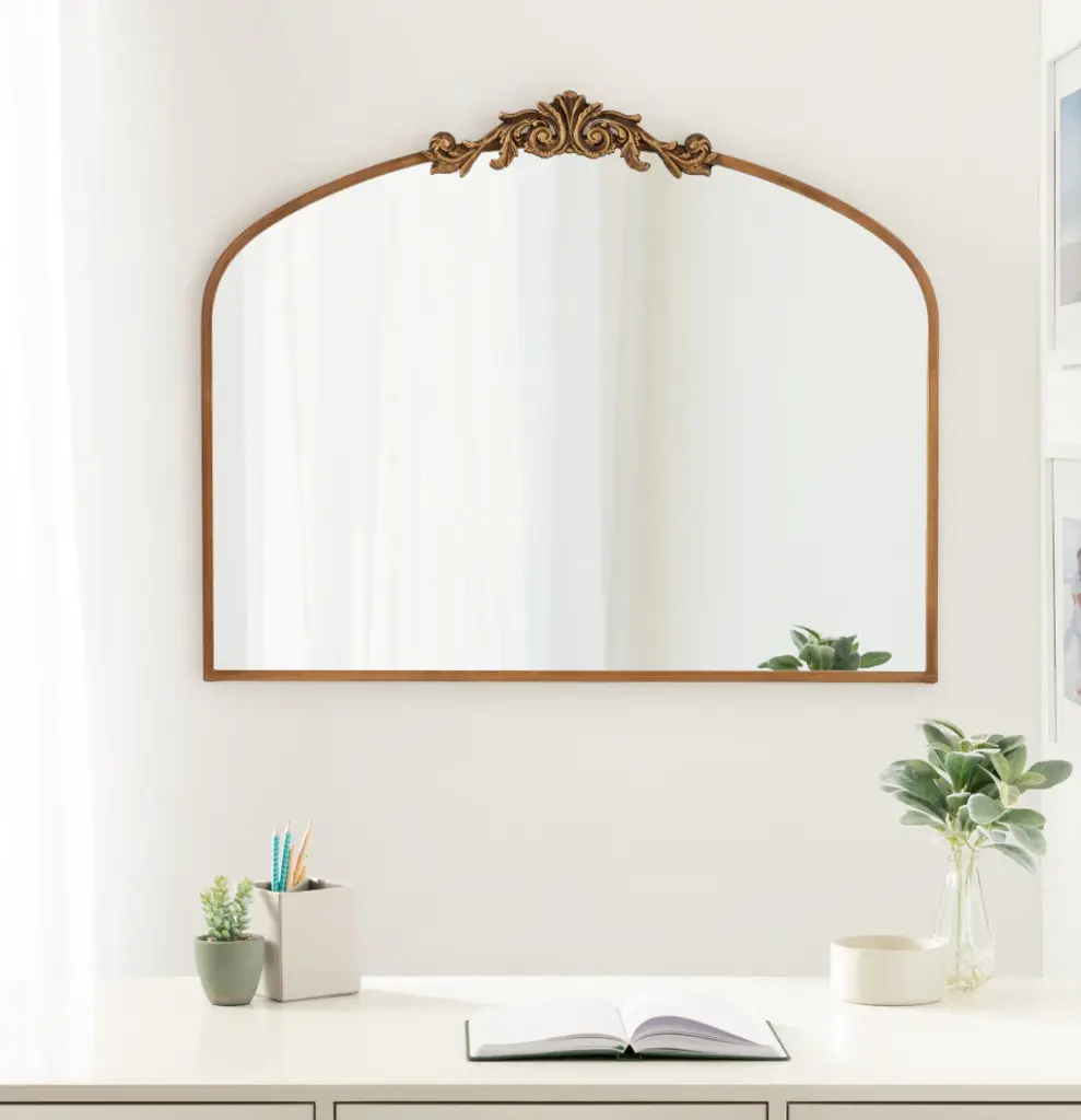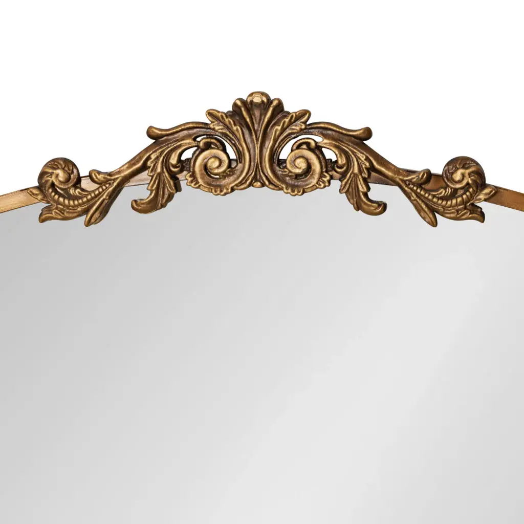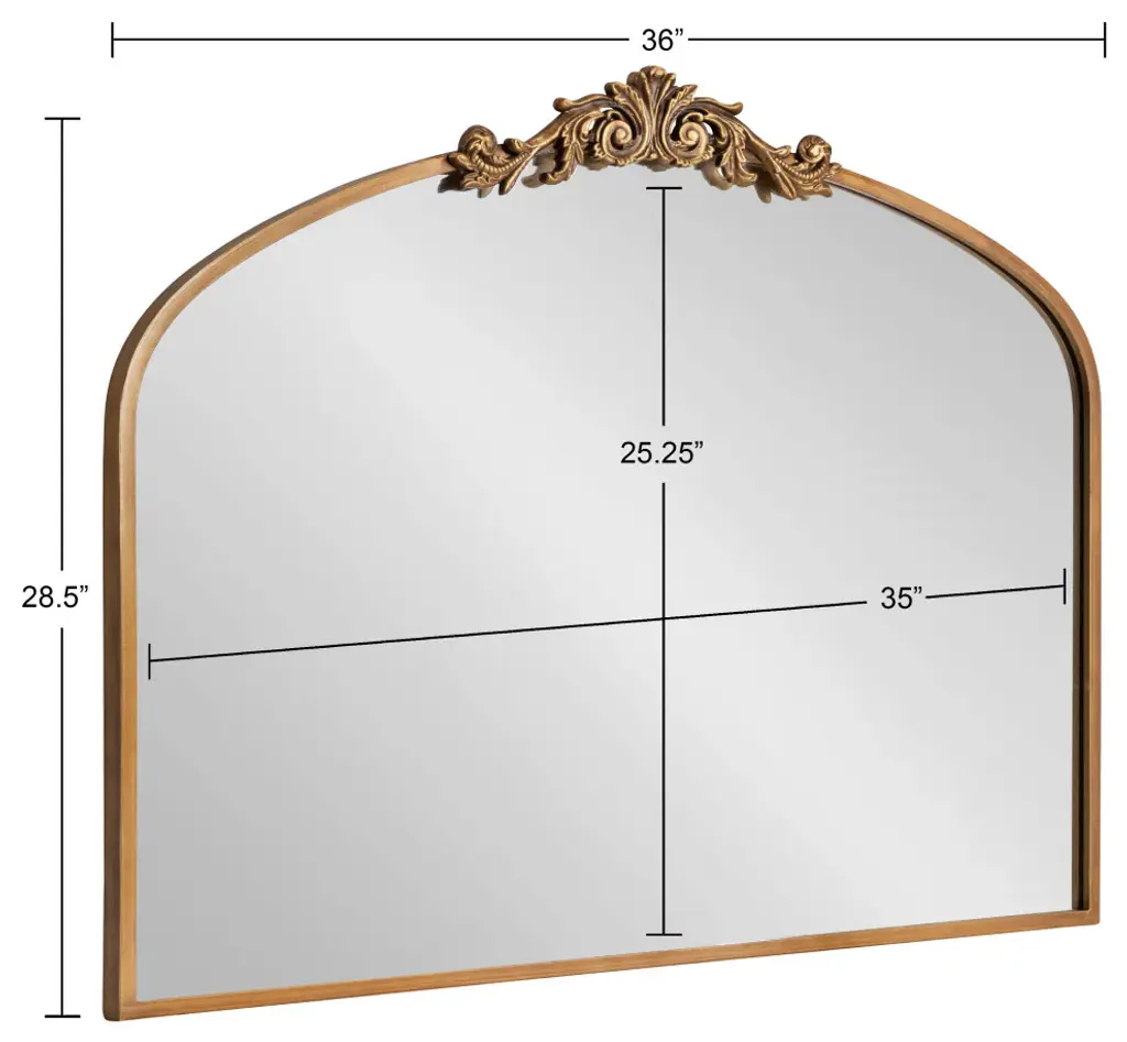 The Arendahl wall mirror is here to bring a brilliant and decadent accent to your traditional home decor. This wall mirror features a baroque-inspired design, with an ornate crown cascading down its beautiful frame. The hand-applied gold finish brings it together as an elegant yet tradition-inspired decor item to display in any wall decor scheme. Due to its hand-finished craftsmanship, each piece may vary in appearance. Display the glamorous Arendahl as a bathroom vanity mirror or a decorative focal point amongst your living room, entryway, or bedroom decor. Use this decadent wall mirror to bring dimension to your smaller spaces, opening up the area and illuminating the darker corners. This wider edition of our classic Arendahl mirror is 36" wide by 1.5" deep by 28.5" tall, creating a striking statement piece for an iconic wall display. This framed mirror is lightweight and easy to hang, with metal D-ring wall hangers securely attached to the back. There''s no better way to bring an elegant, traditional design aesthetic to your home than the lovely Arendahl mirror. It''ll dazzle your guests and create a permanent statement piece for your living space.• Ornate Frame: This elegant wall mirror features an ornate, baroque-inspired frame with a trendy arched frame and an ornamental cascading garland crown• Beautiful Finish: Designed for the glamorous and traditional decorator, the Arendahl mirror has a sophisticated gold finish that showcases style and elegance• Wide Size: This wall mirror showcases a vibrant surface area with a display size measuring 36" wide by 1.5" deep by 28.5" tall, fitting on various walls throughout your home• Versatile: This beautiful wall accent is the perfect bathroom mirror or decorative focal point amongst your bedroom, entryway, kitchen, or living room decor• Easy to Hang: The Arendahl wall mirror takes minutes to hang on the wall with its lightweight frame and D-ring hangers securely attached to its protective backing
