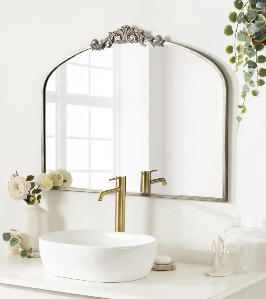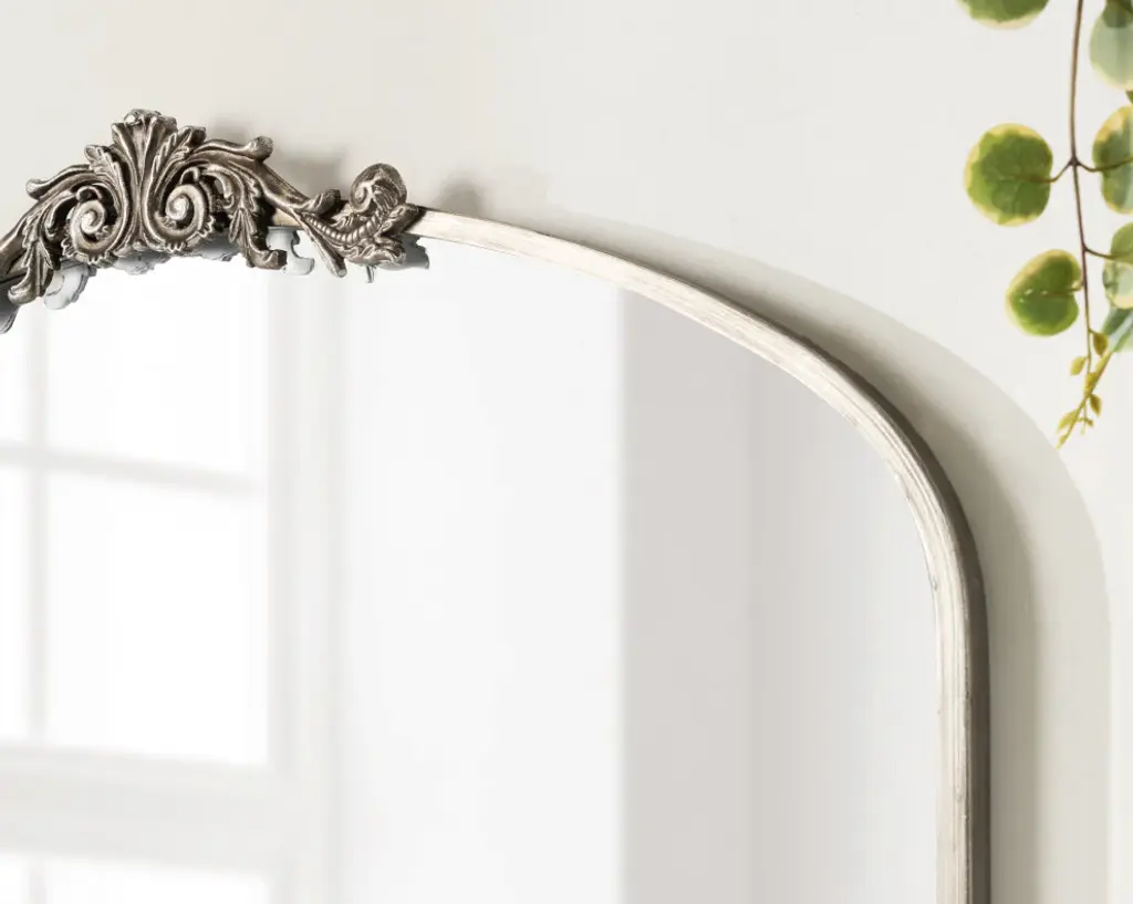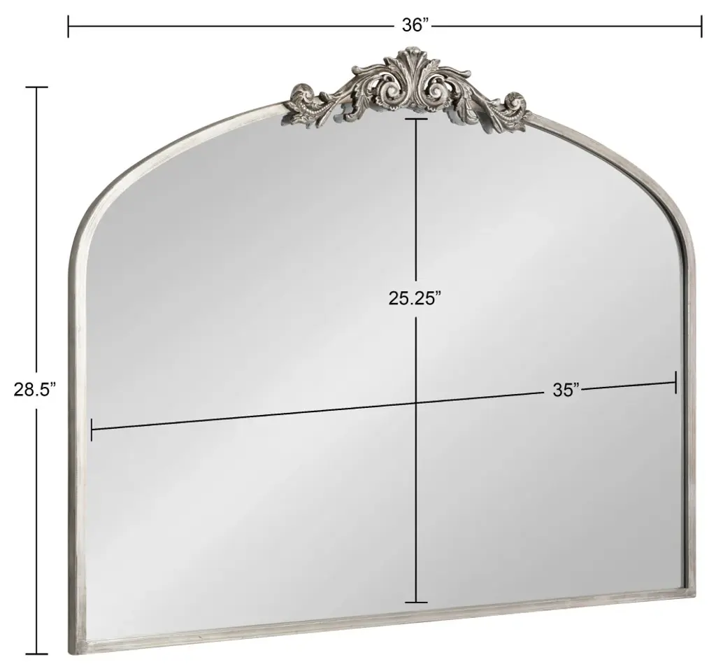 The Arendahl wall mirror is here to bring a brilliant and decadent accent to your traditional home decor. This wall mirror features a baroque-inspired design, with an ornate crown cascading down its beautiful frame. The hand-applied silver finish brings it together as an elegant yet tradition-inspired decor item to display in any wall decor scheme. Due to its hand-finished craftsmanship, each piece may vary in appearance. Display the glamorous Arendahl as a bathroom vanity mirror or a decorative focal point amongst your living room, entryway, or bedroom decor. Use this decadent wall mirror to bring dimension to your smaller spaces, opening up the area and illuminating the darker corners. This wider edition of our classic Arendahl mirror is 36" wide by 1.5" deep by 28.5" tall, creating a striking statement piece for an iconic wall display. This framed mirror is lightweight and easy to hang, with metal D-ring wall hangers securely attached to the back. There''s no better way to bring an elegant, traditional design aesthetic to your home than the lovely Arendahl mirror. It''ll dazzle your guests and create a permanent statement piece for your living space.• Ornate Frame: This elegant wall mirror features an ornate, baroque-inspired frame with a trendy arched frame and an ornamental cascading garland crown• Beautiful Finish: Designed for the glamorous and traditional decorator, the Arendahl mirror has a sophisticated silver finish that showcases style and elegance• Wide Size: This wall mirror showcases a vibrant surface area with a display size measuring 36" wide by 1.5" deep by 28.5" tall, fitting on various walls throughout your home• Versatile: This beautiful wall accent is the perfect bathroom mirror or decorative focal point amongst your bedroom, entryway, kitchen, or living room decor• Easy to Hang: The Arendahl wall mirror takes minutes to hang on the wall with its lightweight frame and D-ring hangers securely attached to its protective backing