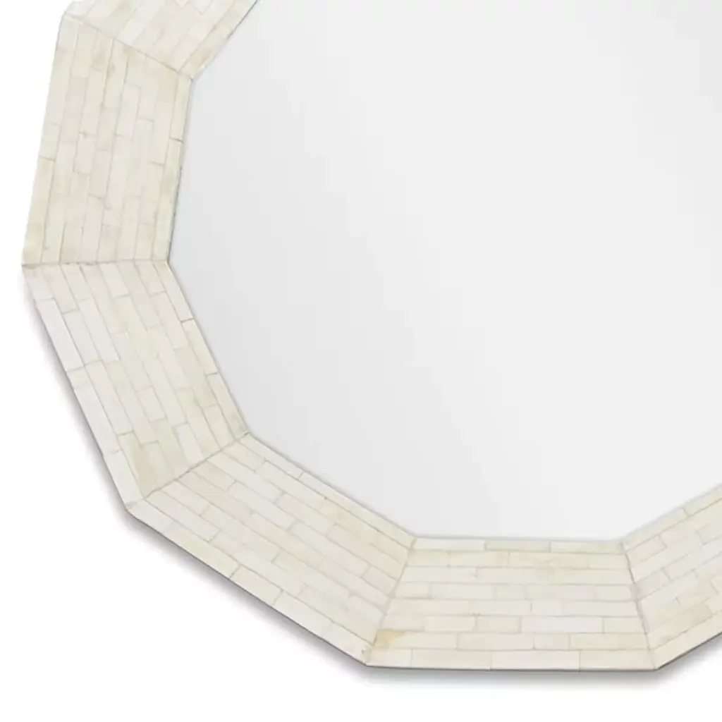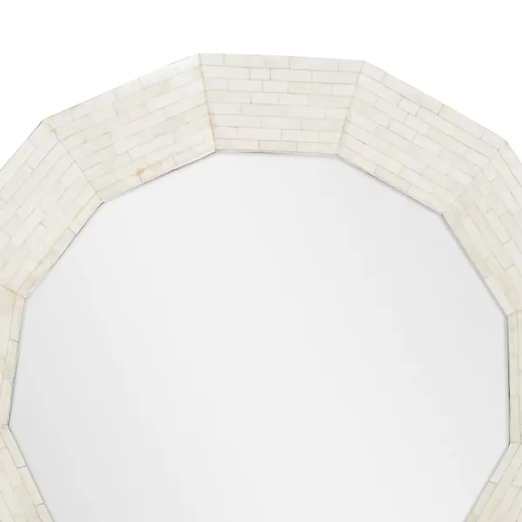 The Ares Bone Mirror from Regina Andrew showcases the beauty of natural materials. Crafted by skilled artisans, each piece of bone is carefully selected and arranged to create a unique mosaic frame. This mirror celebrates the organic patterns and textures found in nature, bringing them into the home in a functional form. The neutral tones of the bone complement a wide range of color palettes, making it adaptable to various decor styles. As each mirror is handcrafted, no two are exactly alike, ensuring that every Ares Bone Mirror is a one-of-a-kind piece.