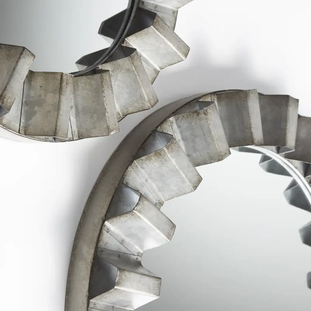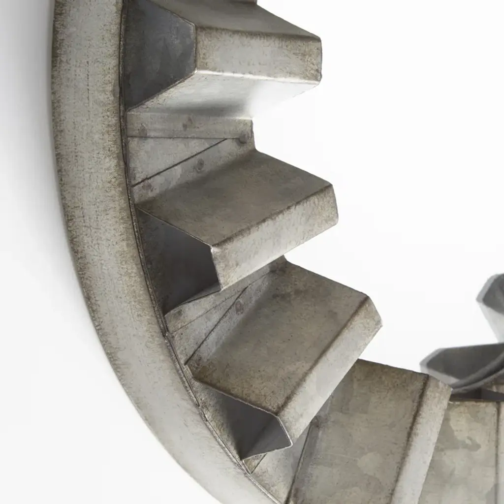 The Argos mirrors feature a rustic, farmhouse-inspired look. Boasting a distressed, galvanized finish on a riveted design, this wall hanging decor is of modest size but with added depth, making it perfect for installing multiples in any hallway, or living room space, with a modern or industrial appeal. Create an artful installation with multiples on a vast-stretching wall space, or hang a single piece over a small accent table for an added touch of bucolic charm.