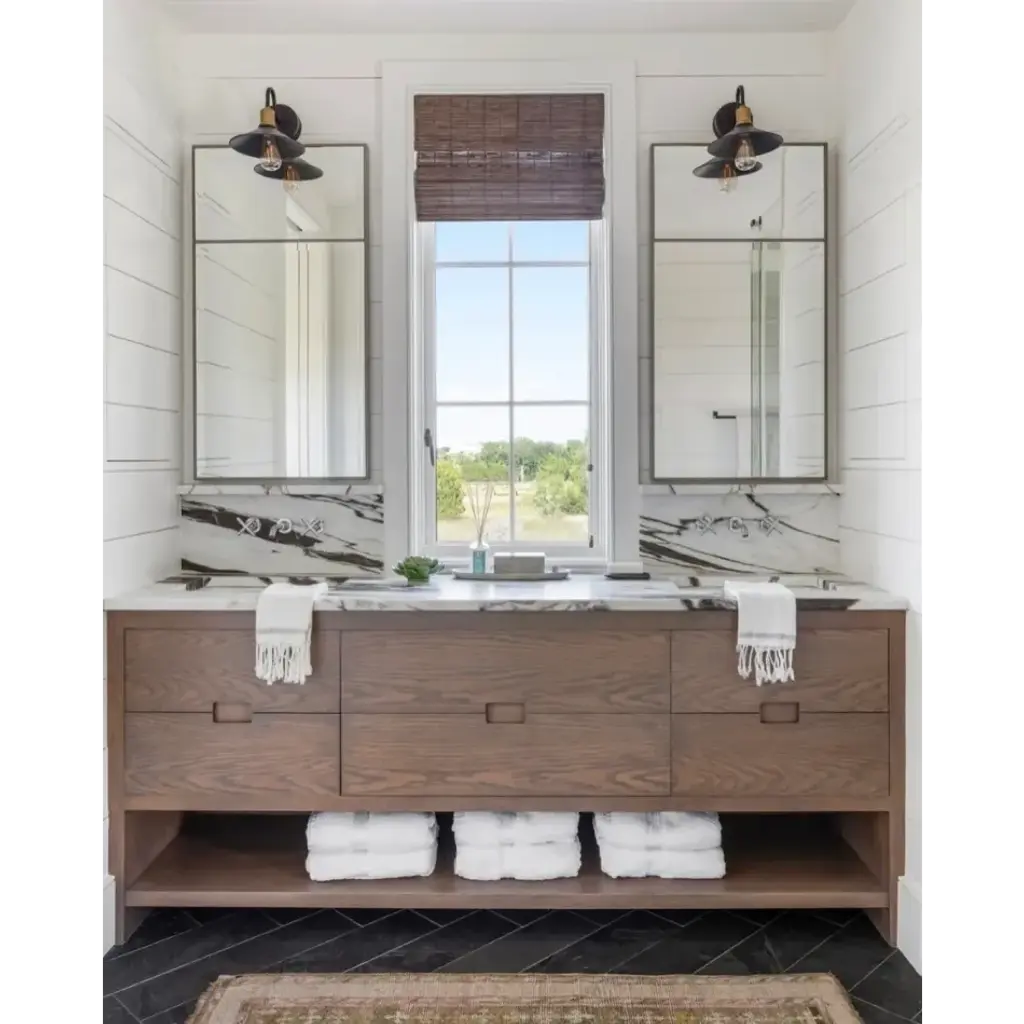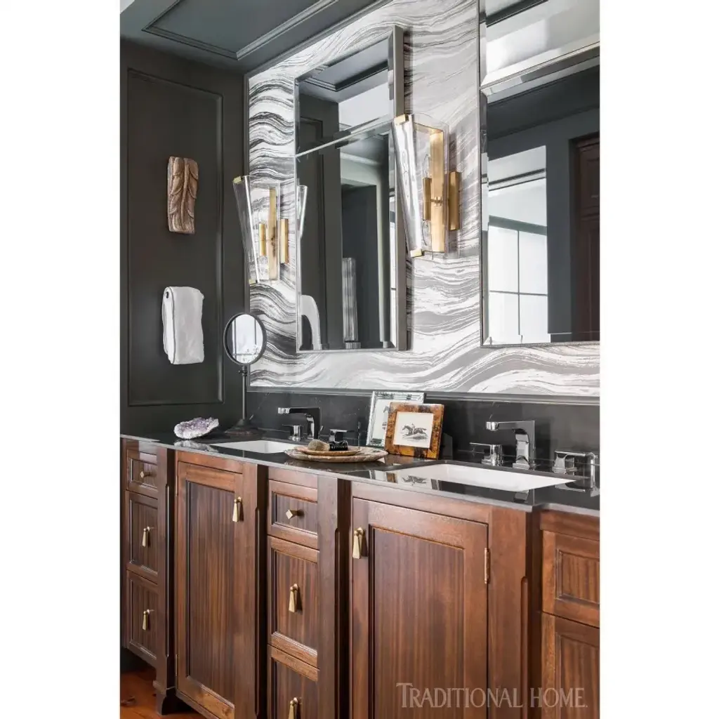 Sleek, chic, and sophisticated. The Ariela's modern, thin profile is given just the right hint of luxury thanks to its faux shagreen finish. Two beveled mirror panels, and a narrow seam to delineate them, provide the finishing touches for this simple, stylish piece.