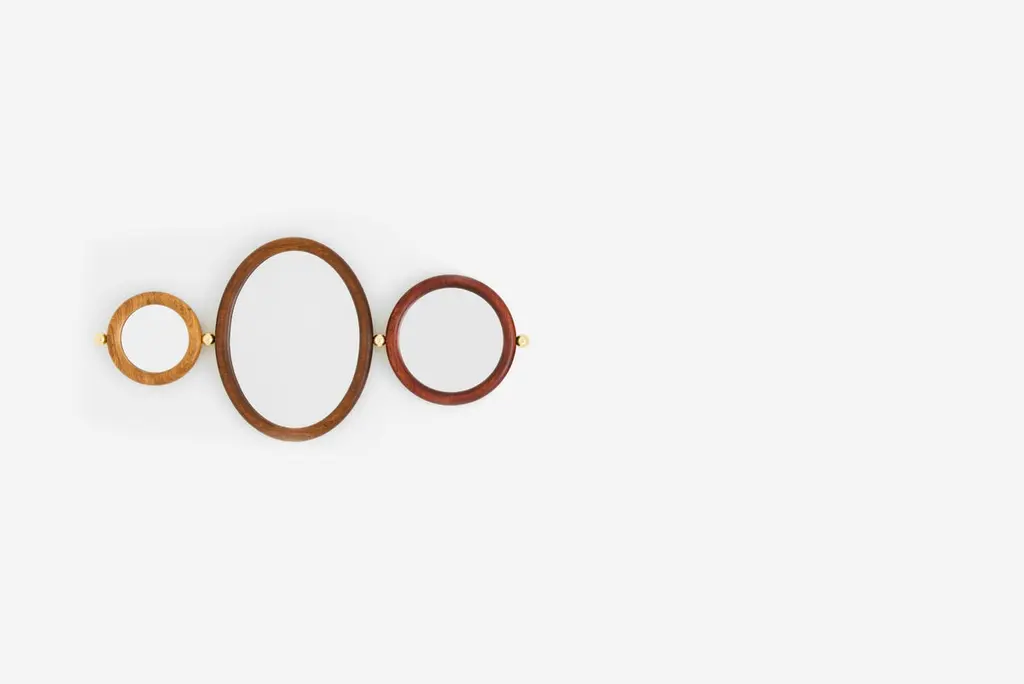 Small Aro mirror 45 by Leandro Garcia Contemporary Brazil DesignDimensions: H 45 x 5.6 cm Final mirror length considering spheres: L 52 cmMaterials: light, medium, dark or reddish tauari wood frame and background silver mirror Without polished brass spheres - sold separately.Available in H 35, 45, 55, OvalThe initial idea for the Aro Mirror came during the social project “Mãos em Ação” (“Hands in Action”), a realization of Instituto Campana in partnership with ÔdaDesign Club, produced by Consuelo Cornelsen and mentoring by Humberto Campana. Later developed, Aro Mirror has a thick round-section solid wooden frame forming a circle or an ellipse. Embedded to it is the mirrored surface. Each side edge of the frame receives a solid metal sphere that can be used as ahanger. Available in several dimensions, Aro Mirror still allows to form sets through the metal spheres, which this time connect the pieces in sequence and create different compositionsLeandro GarciaContrary to a general trend of large-scale production and homogenization, he develops unique and exclusive designs. His creative process claims on rational and functional solutions that explore the essence of shapes in the conception of the object and/or space. Leandro Garcia seeks to develop a timeless aesthetic, which translates into the disposal of excess and theexploration of primordial spatial matters such as proportion, light and shadow, materials and textures.The detail is essential, being directly connected to the design artwork.Architect and urban-planer graduated from the university “Universidade do Grande ABC(UniABC)”, Leandro Garcia began his studies in the area over 25 years ago, when attended technicalschool in Civil Engineering Drawing (ETE Julio de Mesquita). Still in university, he received an honorablemention at the International Competition of Architecture Schools from the 4th International Biennialof Architecture. He collaborated with two important Brazilian offices, receiving several national andinternational prizes. At first he worked with the designer Marcelo Rosenbaum and then with therenowned architect Isay Weinfeld.The architect was also professor at Campo Real College, at Centro Europeu and at ISAE/FGV.Nowadays, he directs his own studio, which develops residential, commercial and institutionalarchitecture projects, and also interior and furniture design. Many of these projects have been publishedin different Brazilian and foreign magazines, and products presented in several editions of the MilanDesign Week and commercialized nationally and internationally.He is also a professor at the Tuiuti University of Paraná (UTP) and the British School of Creative Arts (EBAC).