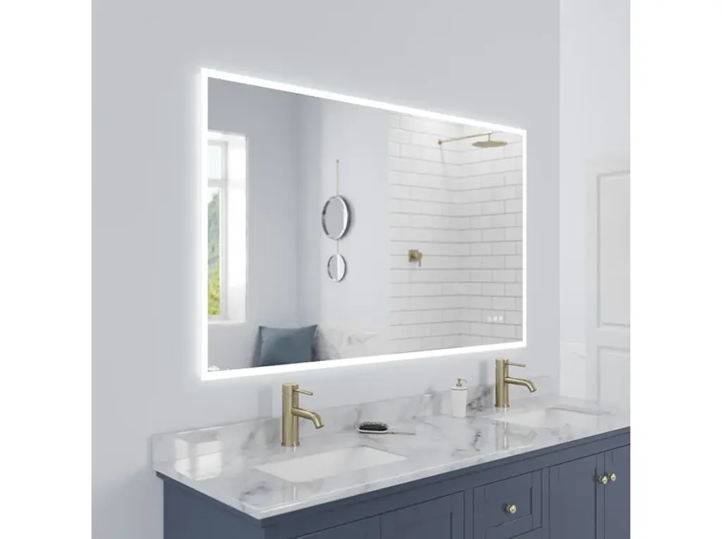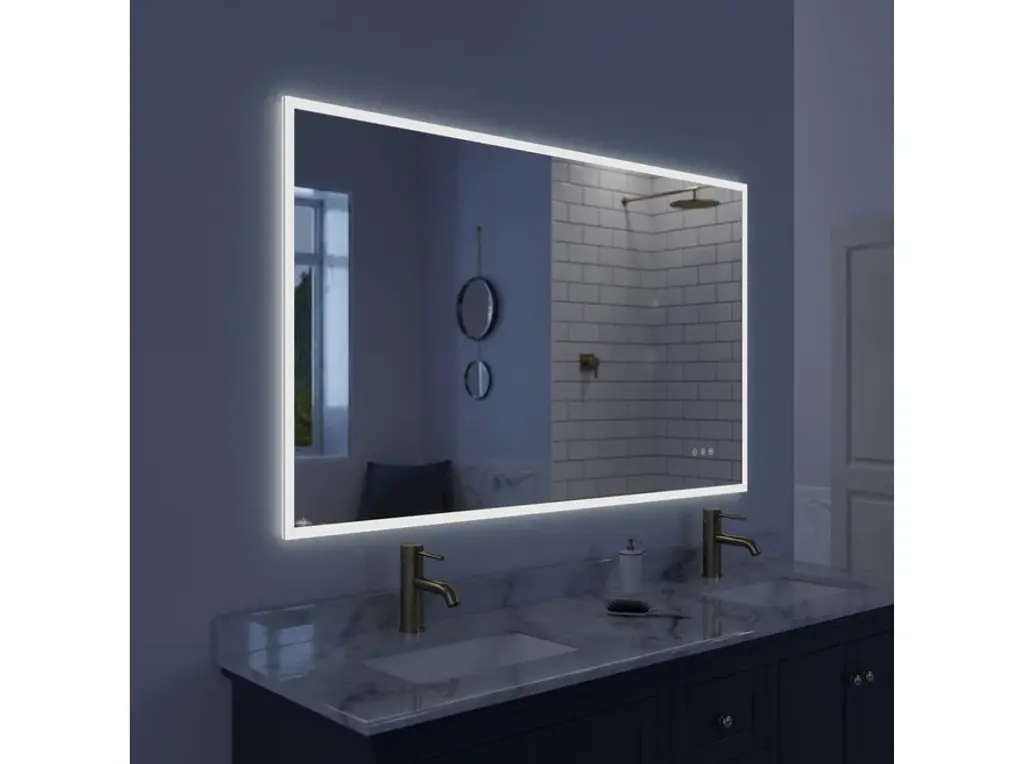 Luxaar lighted mirror provides optimal lighting that is similar to natural lighting. The Luxaar lighted mirror will be the focal point of your bathroom with its elegant, modern yet simple design. Brighten up your bathroom today.Color changing capability allows user to choose between 3000K to 6000K ranging from a warm yellow light to a cool white tone. LED Lifetime of about 50,000 hoursBuilt in Dimmer, Defogger and Color Changing features are activated by separate buttons for easy use. Each color option can also be dimmed from 0 to 5051 lumens to the desired amount of light.COPPER-FREE Mirror with SILVER BACKING which prevents mirror from rust and corrosion.Mirror can be hung vertically or horizontally. Includes mounting hardware for surface installation.Professional installation recommended