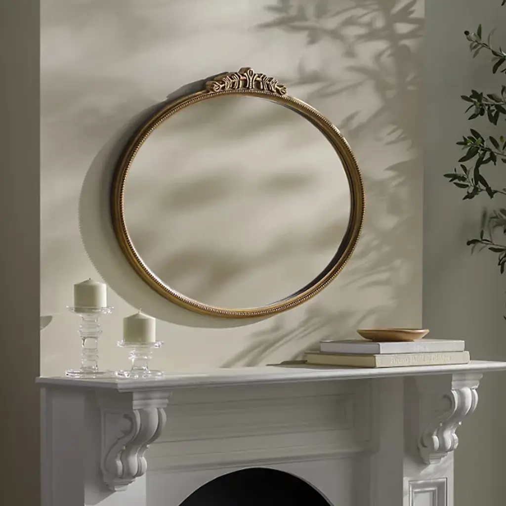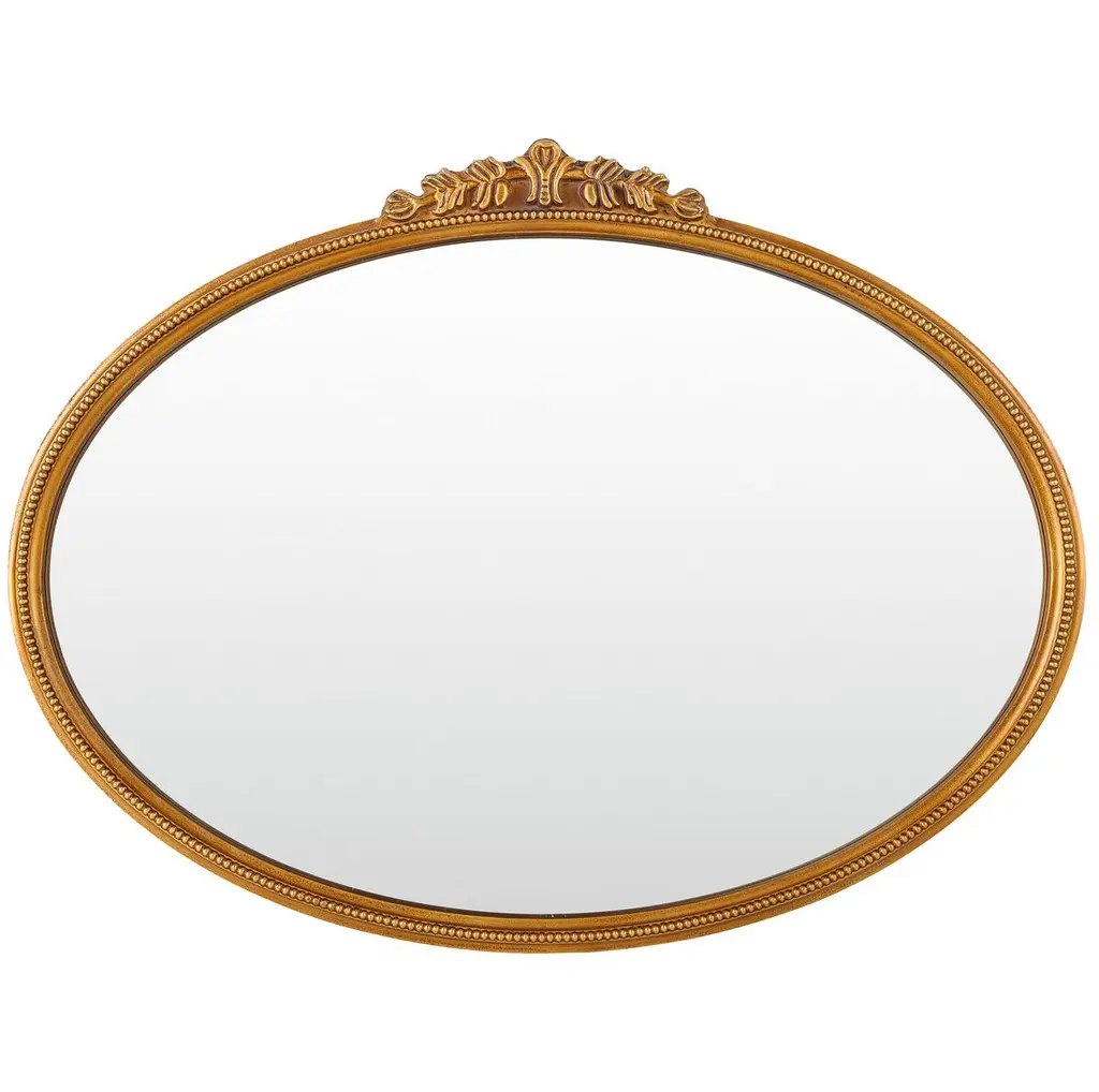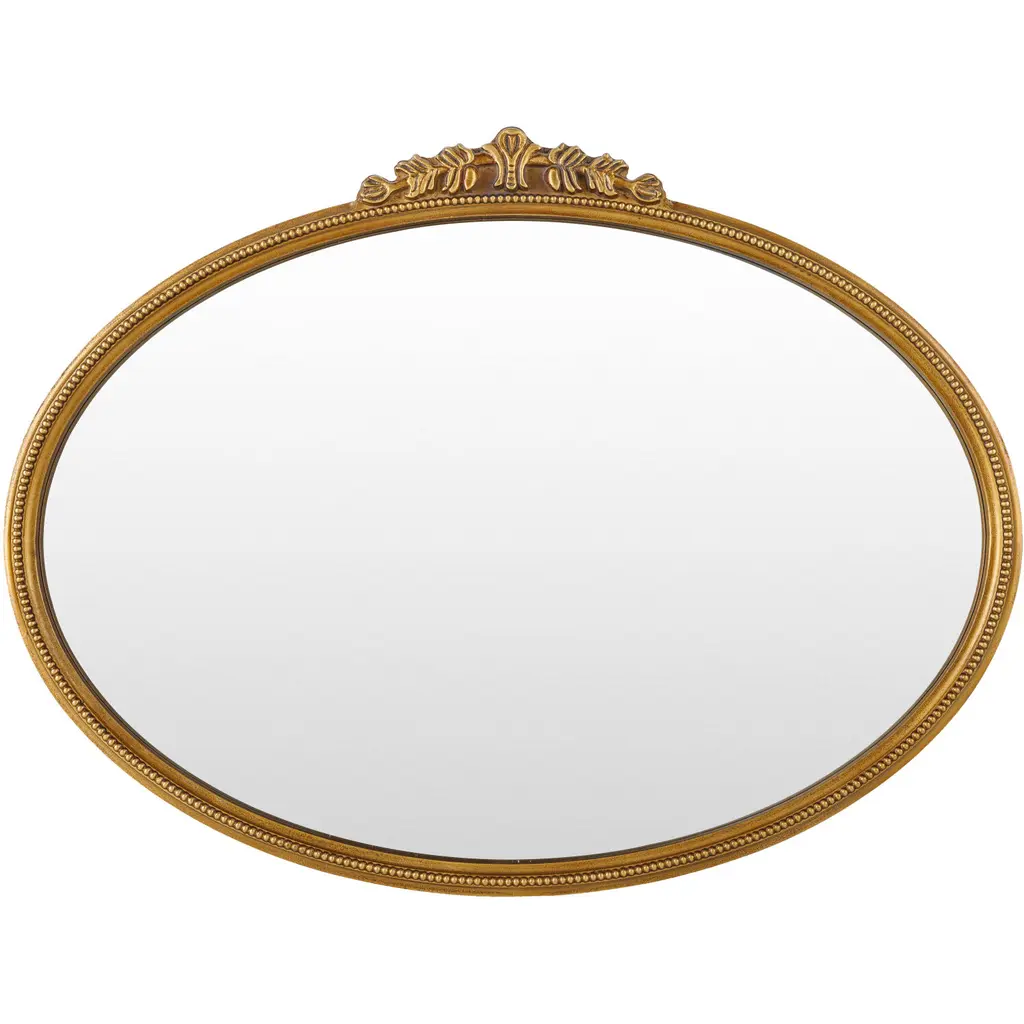 The Arrendale Oval Mirror from Surya enhances the light in dimmer areas or creates a sense of spaciousness in compact rooms. Its manufactured wood frame, with an antiqued finish, provides a robust and attractive base. Topped with a gentle arch, the oval shape offers a softer alternative to straight-edged mirrors. This vertical piece becomes a design highlight, adding visual interest to the walls. The mirror's classic form allows it to harmonize with various styles, from rustic to contemporary.