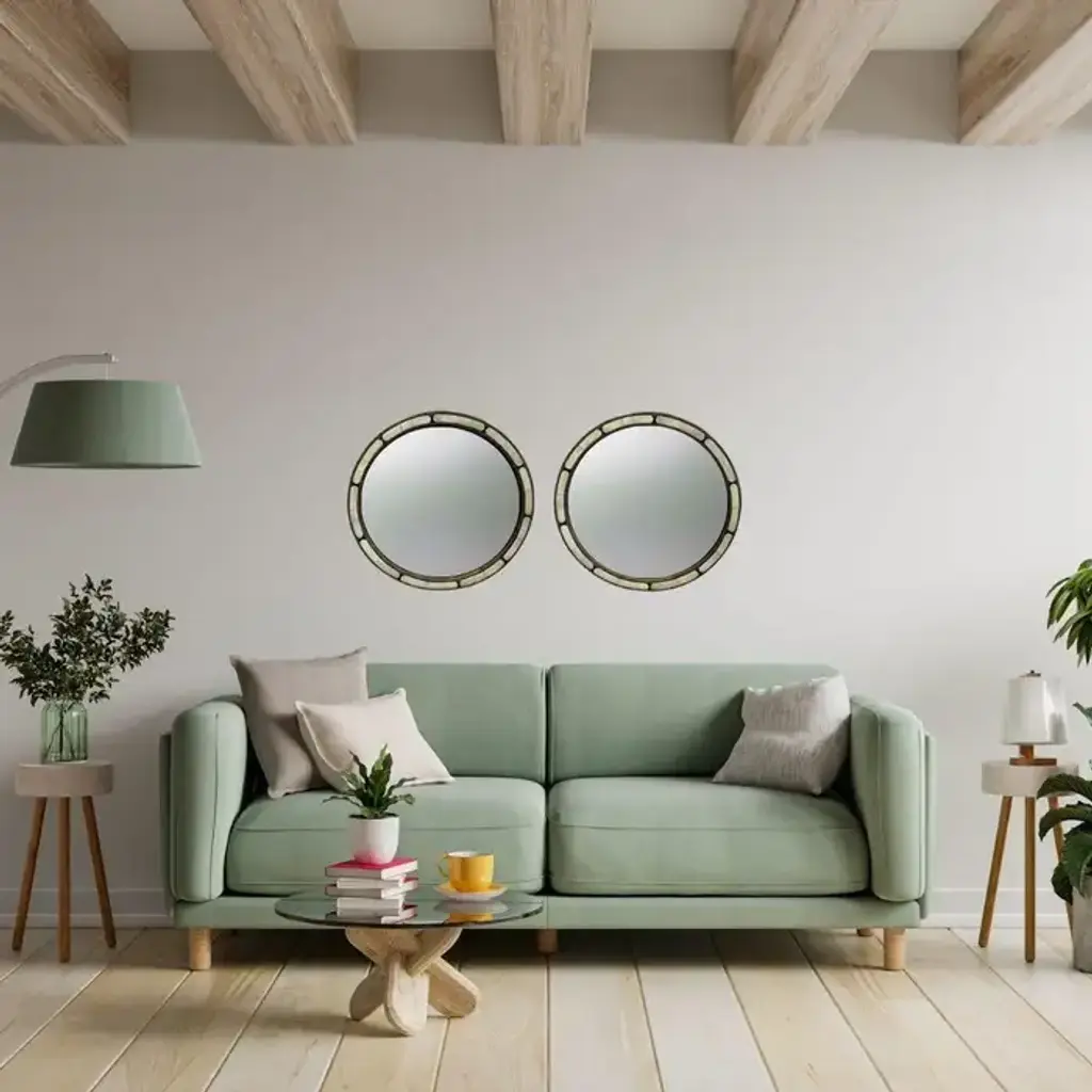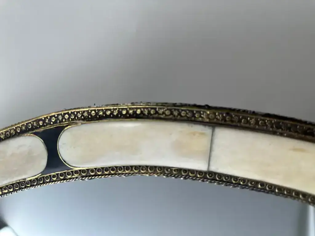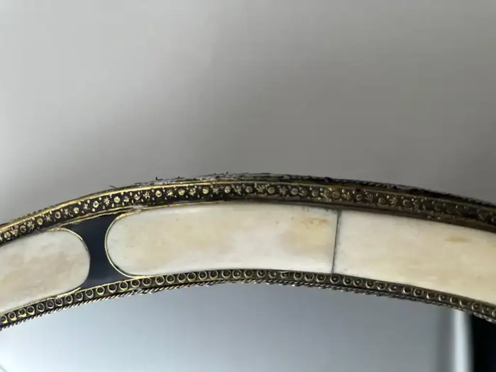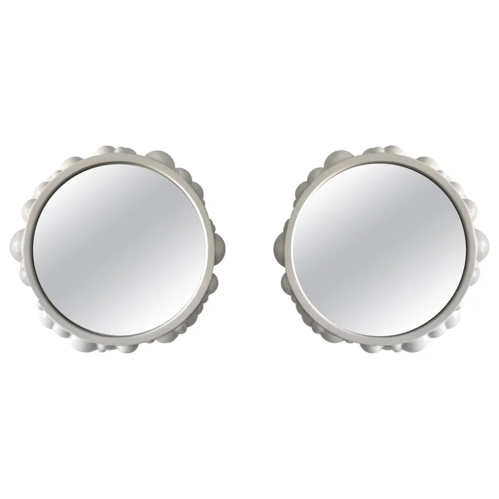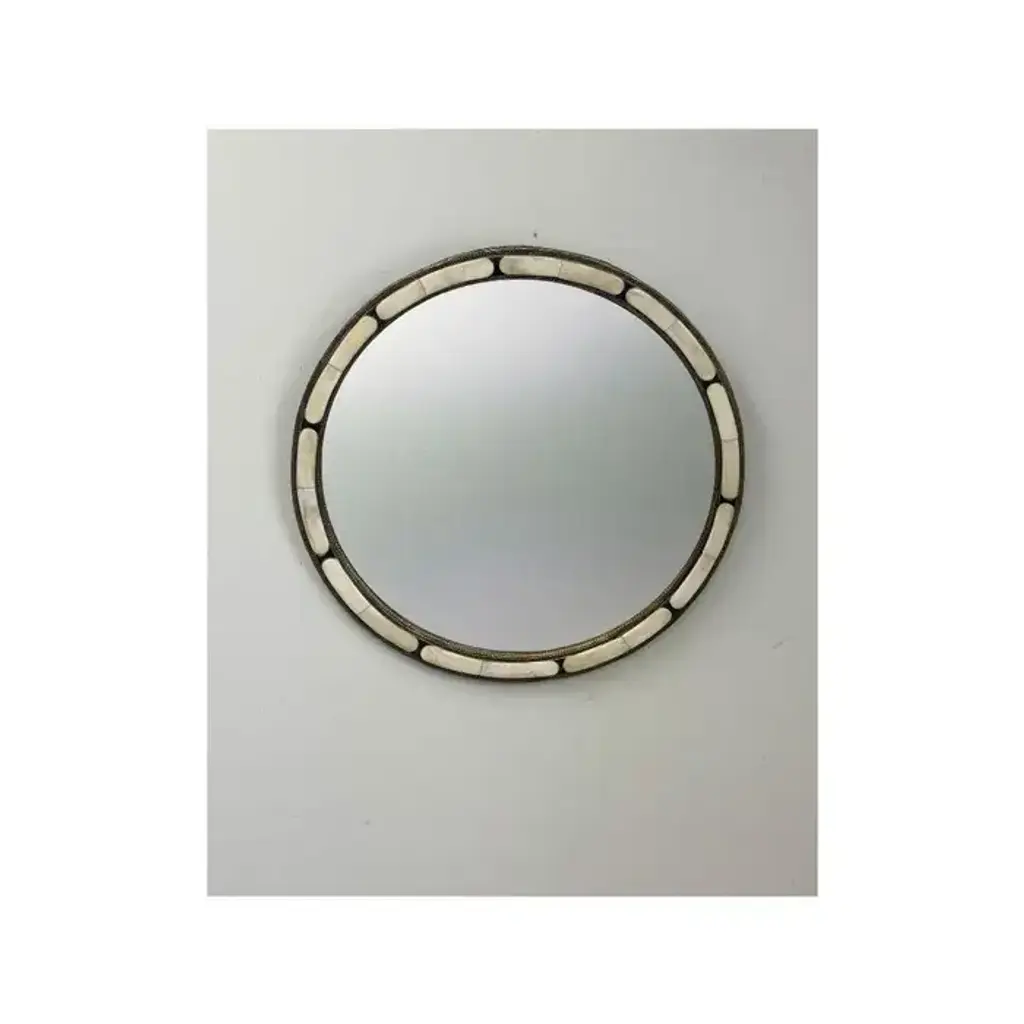Art Deco Style Handmade White & Black With Brass Inlay Round Mirror, A Pair