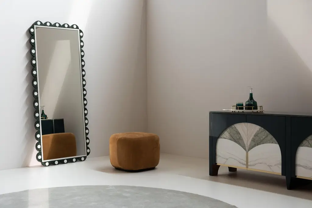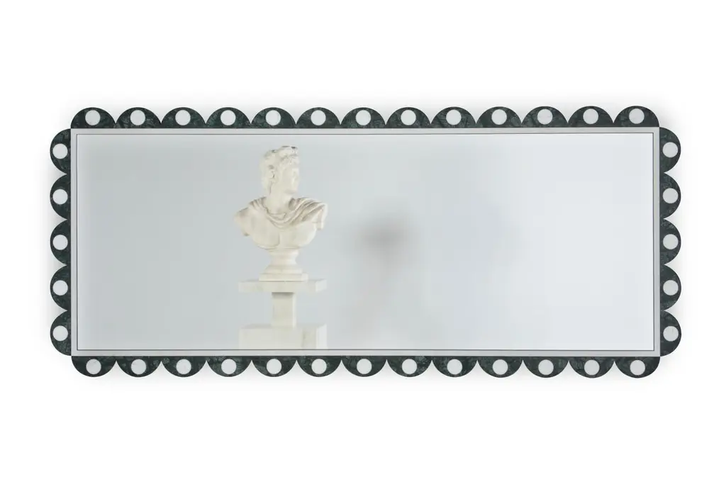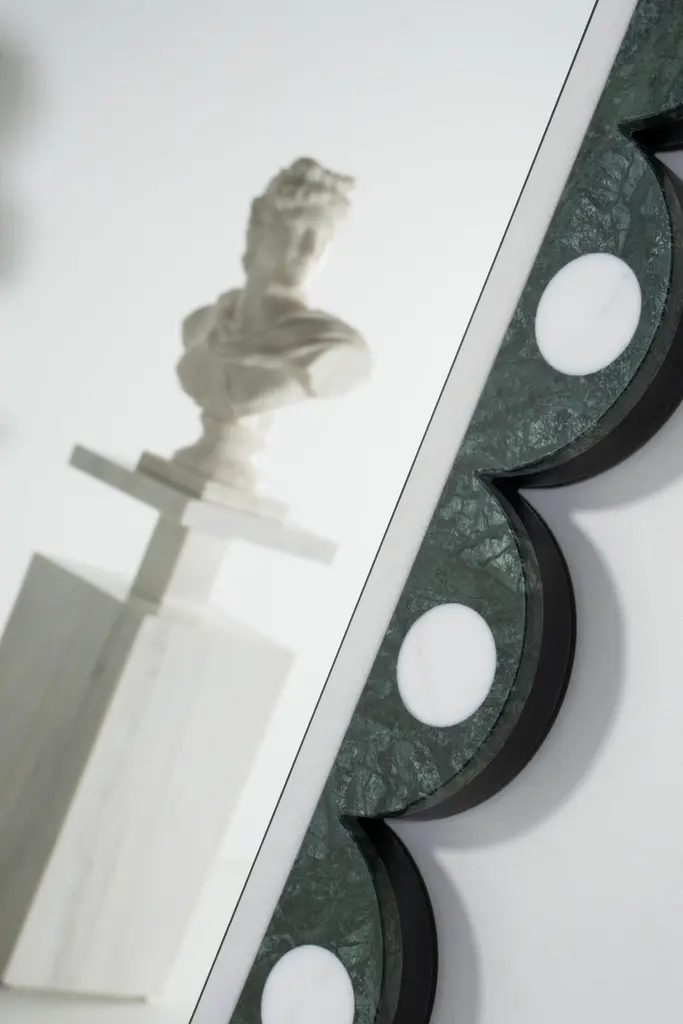 Art Deco Victoire Wall Mirror, Modern Collection, Handcrafted in Portugal - Europe by Greenapple.The Victoire wall mirror is a statement piece that brings harmony to any space.Crafted in Green Guatemala marble and Statuario marble, this wall mirror displays color and shaped elegance.Victoire Wall Mirror Material CodesST005 Green Guatemala Marble, Polished, Dark Green, GlossST031 Statuario Marble, Polished, White-Grey, GlossFI007 Lacquered, Black, SatinMI001 Clear crystal mirrorHandcrafted in Portugal - Europe by GreenappleUnique by design, Crafted by peopleGreenapple transforms contemporary spaces into exclusive narratives of design and craftsmanship. From custom-made furniture to bespoke interiors, each creation is a timeless work of art, shaped by master artisans who honor centuries-old techniques.Founded in 2005 by Sérgio Rebola and Rute Martins, Greenapple has earned global recognition among high-end clientele and leading design firms. While Rute designs each unique piece, Sérgio ensures uncompromising quality from design to production and from production to your home. We provide a seamless experience, offering short production lead times, worldwide delivery within 7 to 10 days, and white-glove service upon request.For U.S. clients, we can handle customs clearance, and offer white-glove service as well upon request.Wall Decor, Wall Art