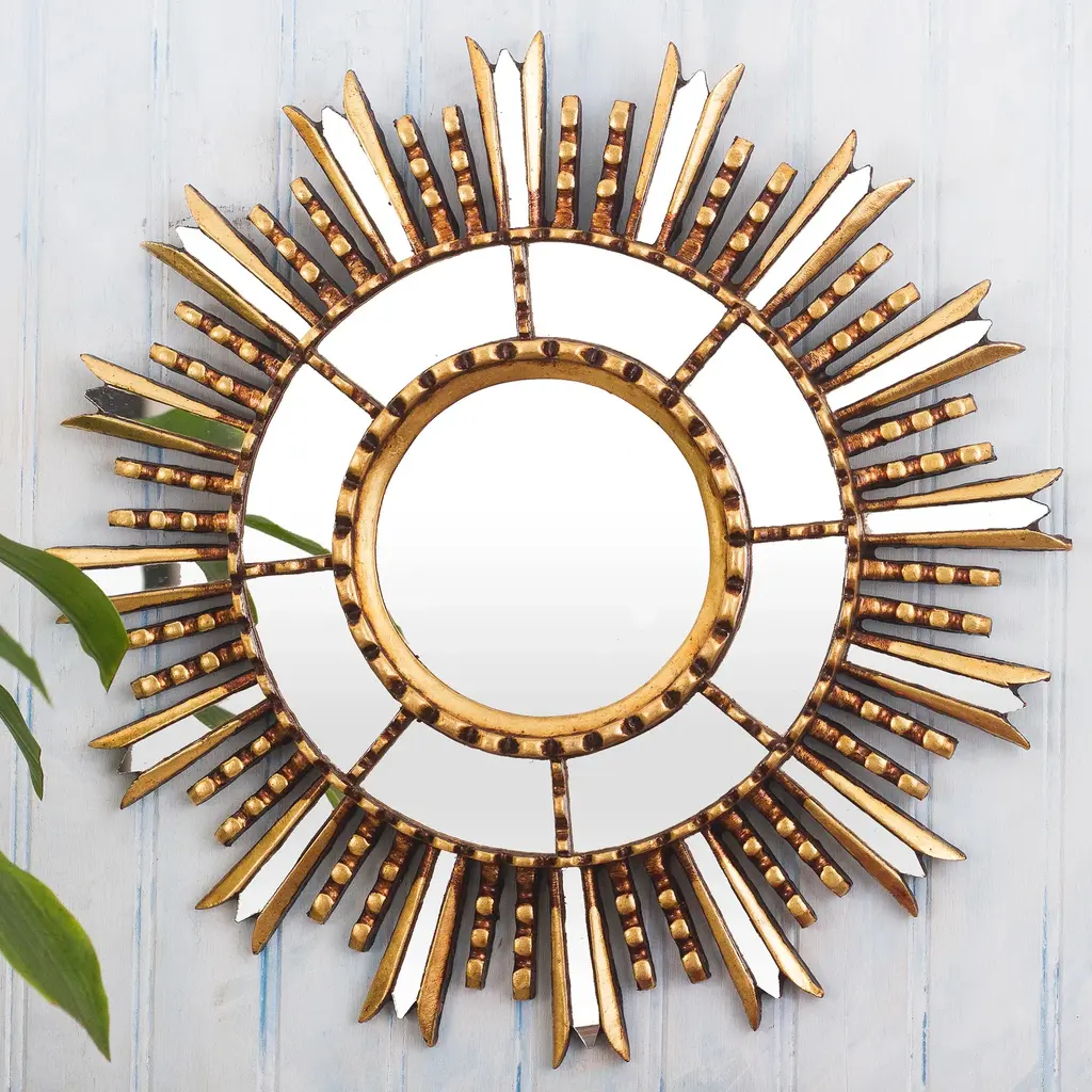Artisan Crafted Wood Wall Mirror From Peru- Elegant Rays